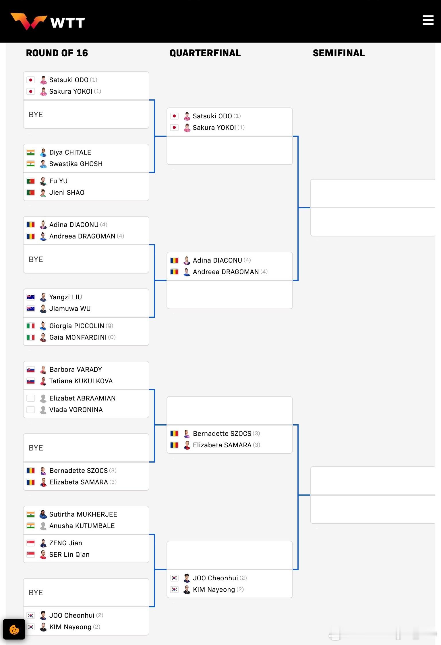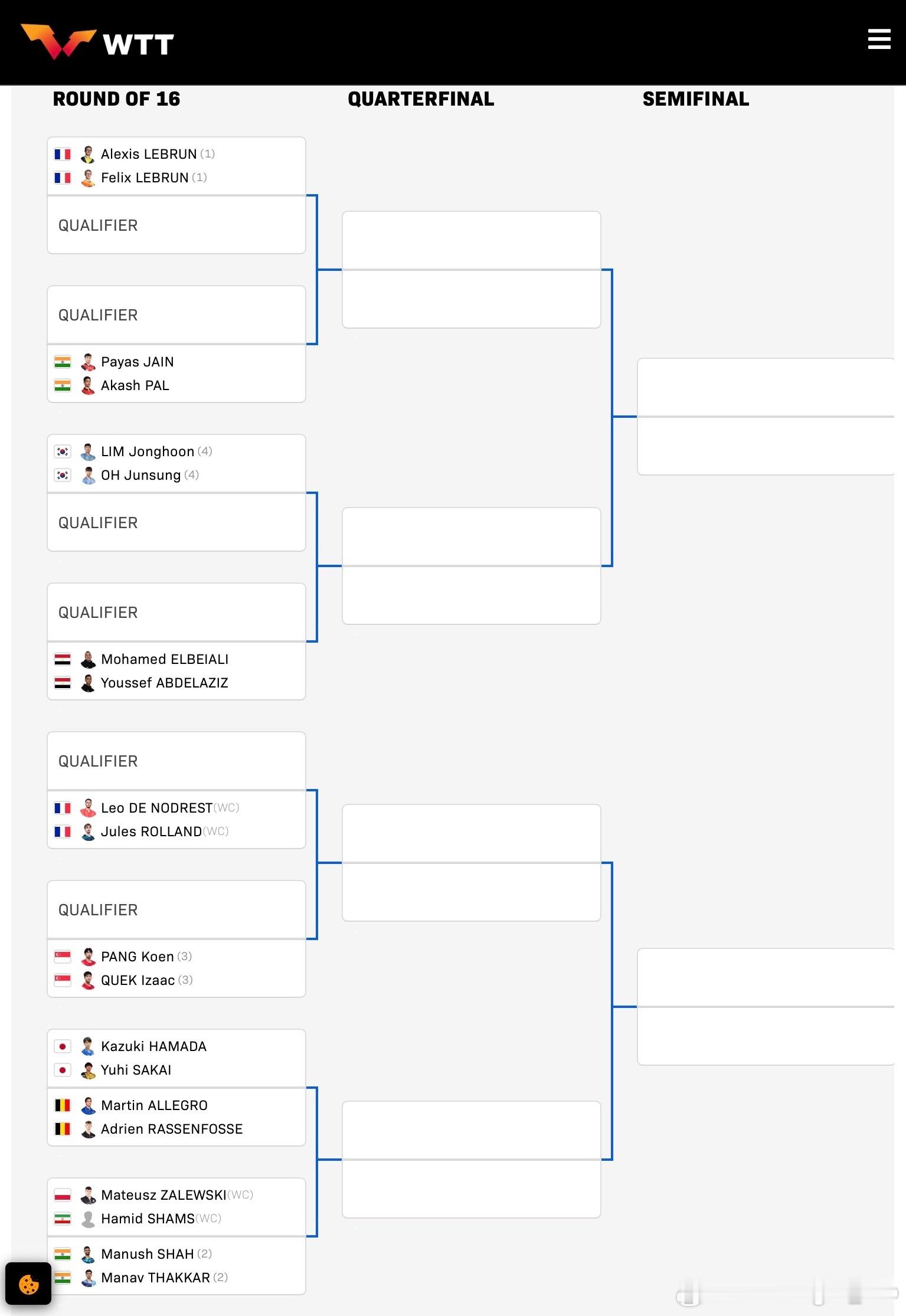 双打正赛签表