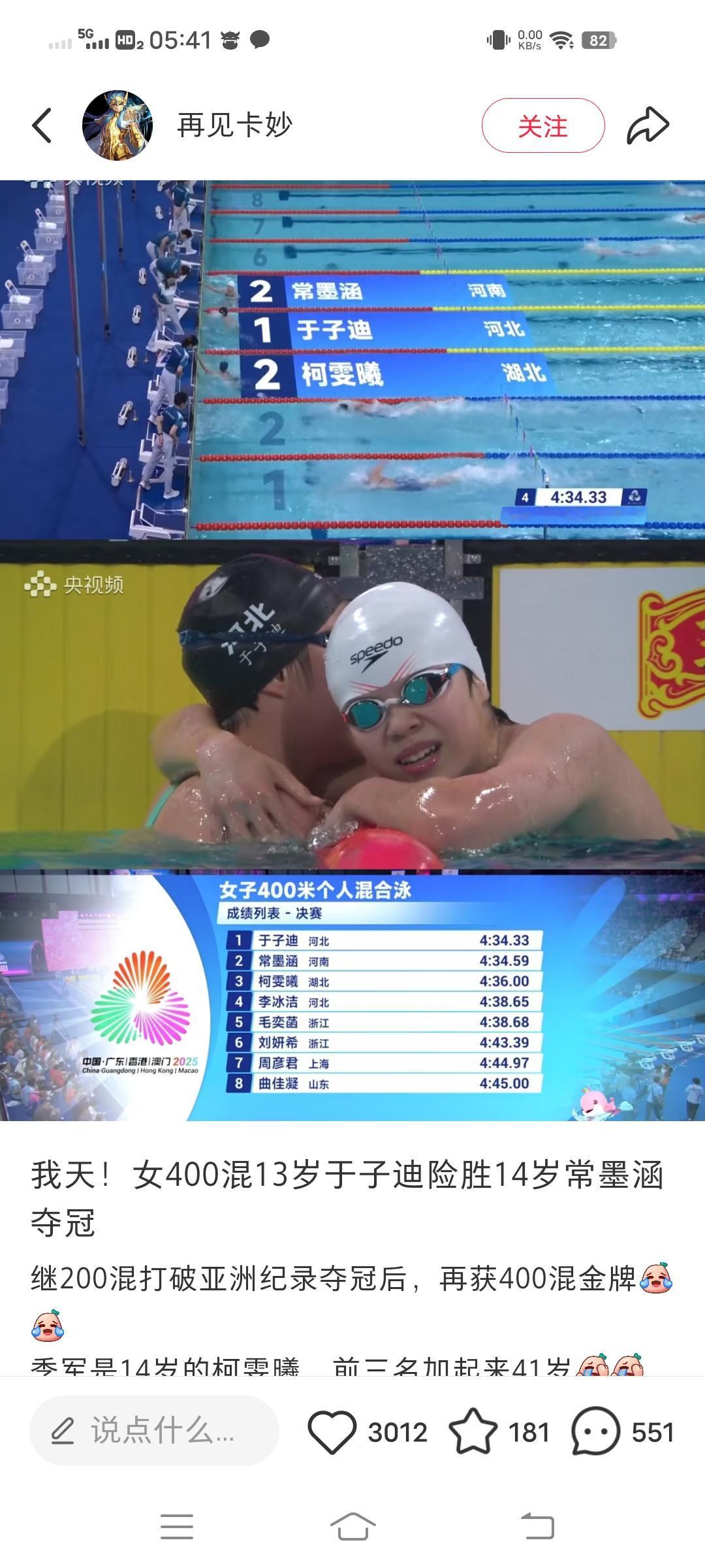 女子混合泳未来或成中国游泳女队奥运最重要夺金点。因为夺得本届全运会200米、400米混合泳冠军的于子迪年仅13岁,她的200米混合泳夺冠成绩还打破了亚洲记录。 关键,这还不是最重要的,最重要的是游泳女队在这个项目上有集团优势。其中夺得400米冠亚季军的三位选手的年龄分别是13、14、14岁。而排名前八的选手只有李冰洁一位是成年人。 可以预见的是,这里面肯定会冒出一两个足可以拿到奥运冠军的顶尖选手出来!