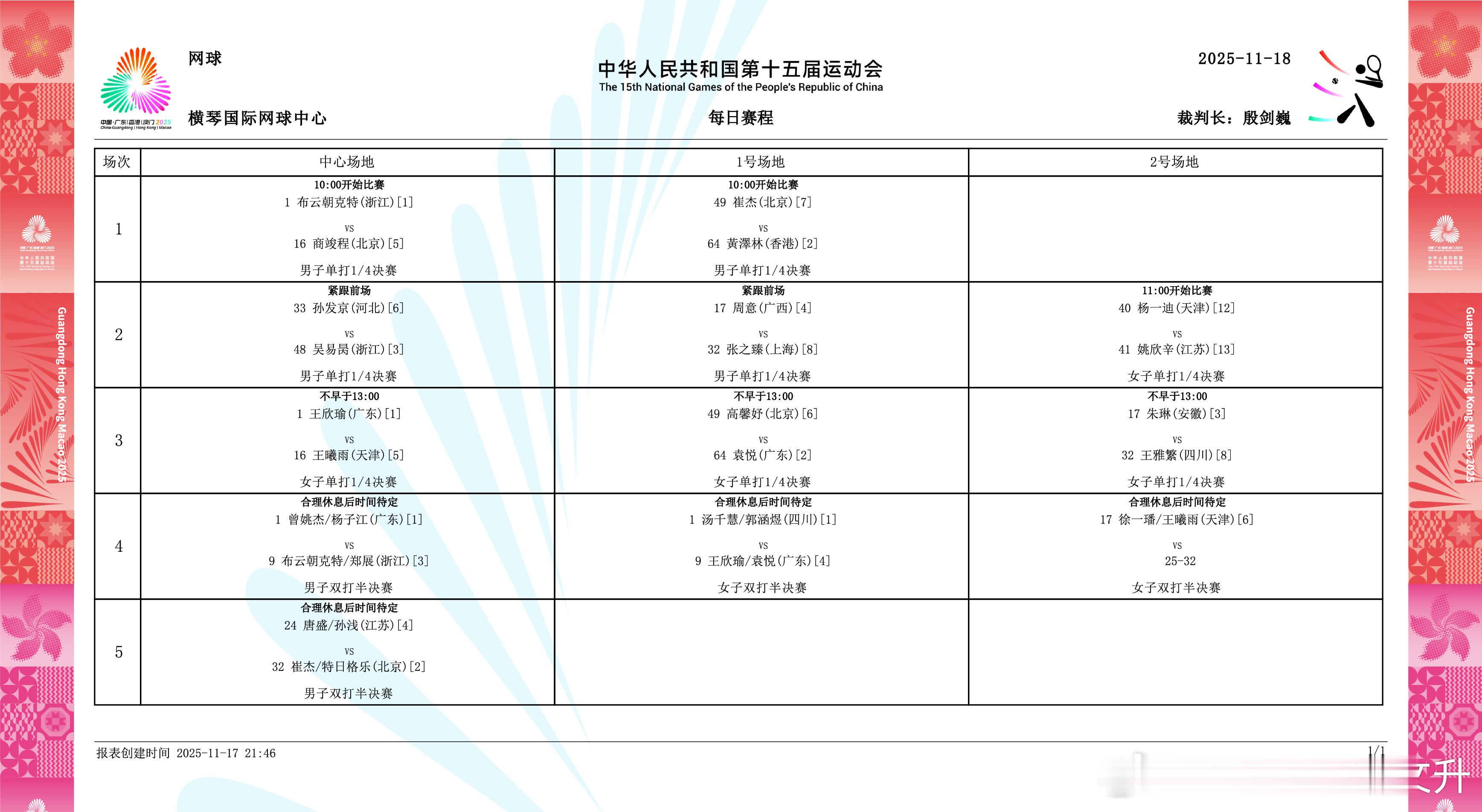 网球11月18日赛程中心场焦点之战连番上演🔥10:00 布云朝克特vs商竣程 双子星火拼随后吴易昺vs孙发京 男神之战随后王欣瑜vs王曦雨 左右之争其他场地张之臻vs周意 实力悍将PK朱琳vs王雅繁 编剧互撕我都想买张机票飞珠海去看了 丨
