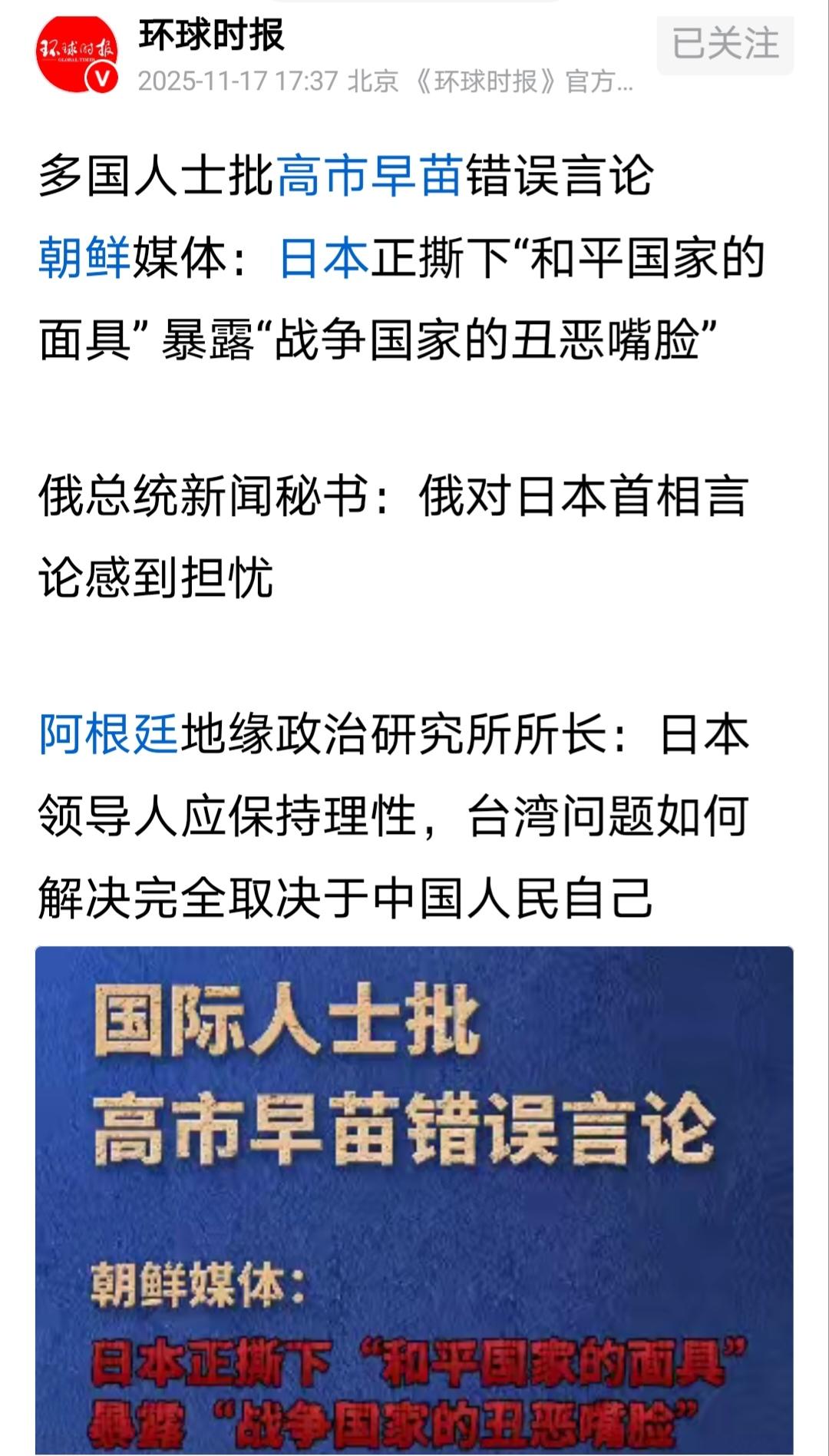关键时刻还是朝鲜靠得住!在大是大非的重大问题上坚决力挺中国。 近日,因高市早苗
