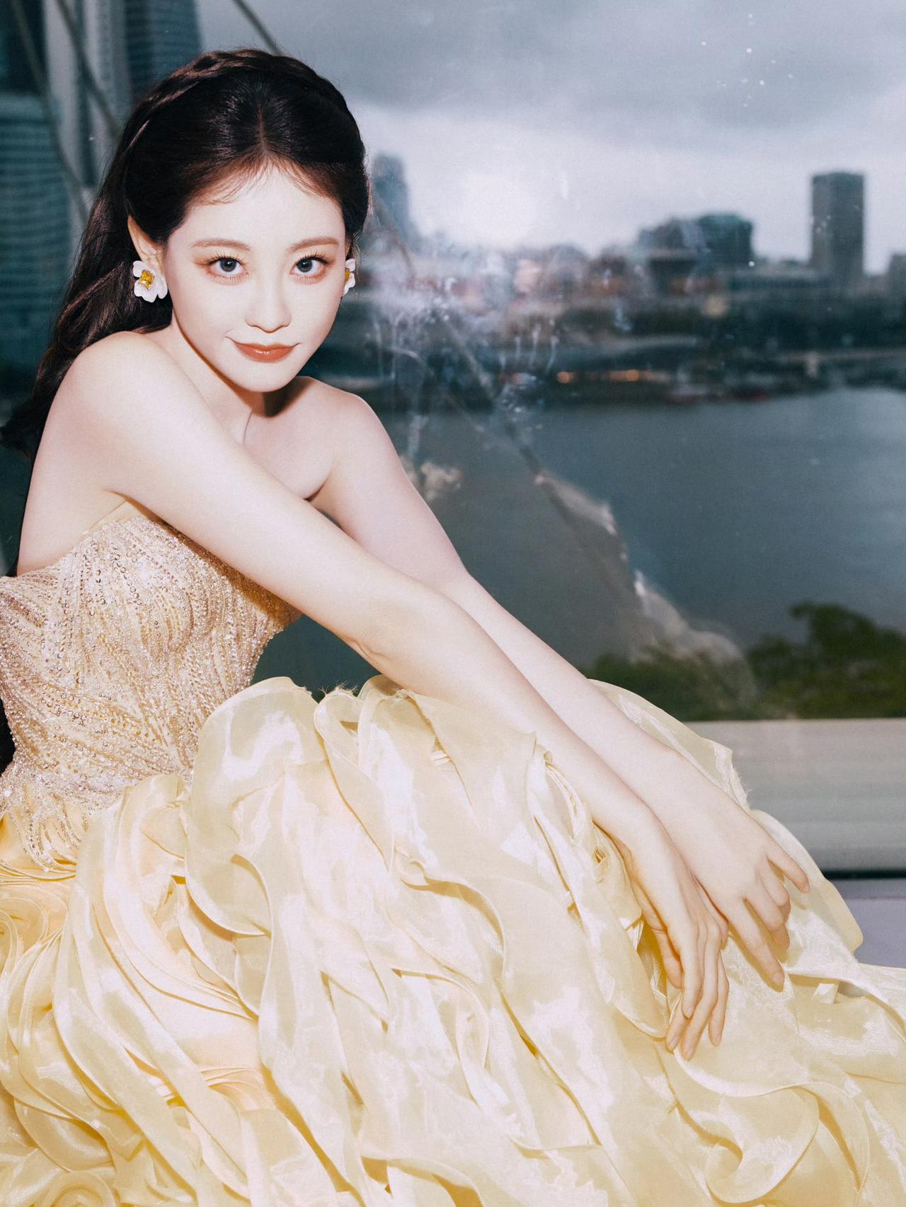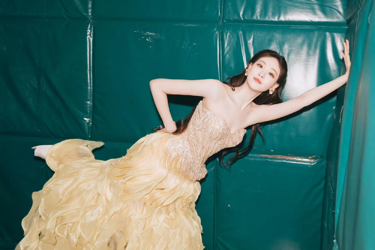 谁懂啊!祝绪丹这身金色流光长裙也太绝了!公主头温柔又灵动,甜妹气质直接拉满,颜值