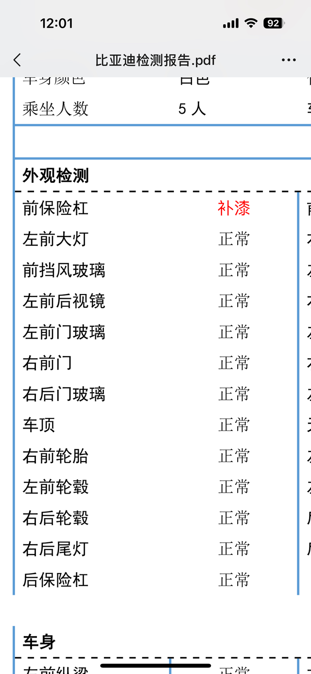 比亚迪还能买到做过漆的车子 本来高高兴兴买个车,他们挪车给我刮了,后面扯皮自己开到外面车行,老板说前保险杠做过漆,后续也问了很多个老板一样的结果,想想就挺离谱的