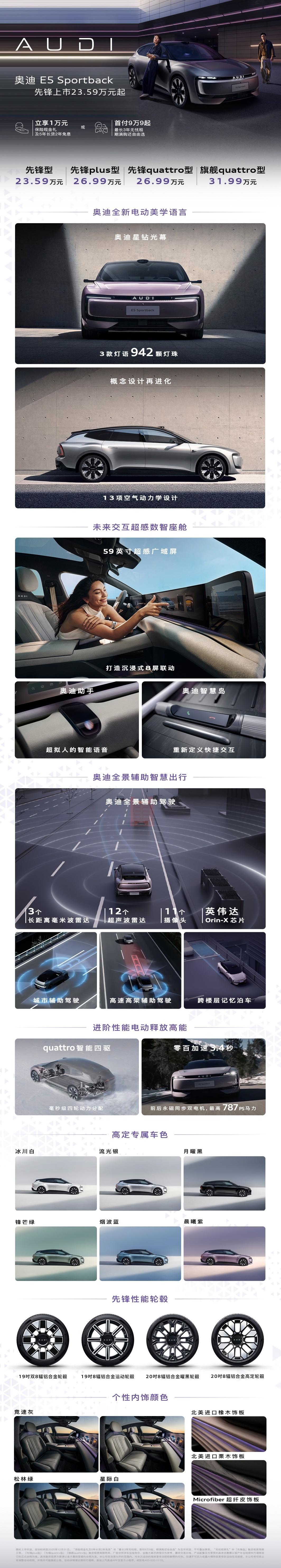 冠军的眼光绝不会差!郑钦文X 奥迪E5,当顶尖运动员的严苛标准,遇上百年豪华品牌的电动革新,从颜色外观、科技配置到驾驭质感,郑钦文以她作为顶尖运动员的严苛标准,对E5进行了全方位的审视。外观方面,奥迪E5新一代设计语言,线条流畅有力,星钻光幕格外抢眼,经典瓦罐造型兼顾运动锋芒与优雅格调,每一处细节都精准契合郑钦文对美学的严苛标准。科技配置,高通骁龙8295芯片赋能的智能座舱响应迅捷,27个感知硬件构筑的高阶智驾辅助系统,还有德国团队调校的quattro四驱系统,迸发3.4秒破百的澎湃爆发力,搭配空气悬架的细腻滤震,爆发力和操控感兼具。冠军都爱的“钦定版”奥迪E5 ,我们可以狠狠地期待一波了!
