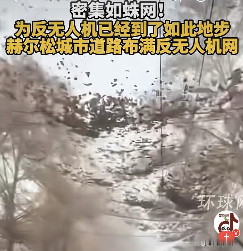 突发奇想,用渔网反无人机! 乌克兰赫尔松居民的天就被这渔网给罩住了,一抬头看见渔网上全是落叶,估计一场大雪下来,没防到无人机,却把自己人给罩住了!