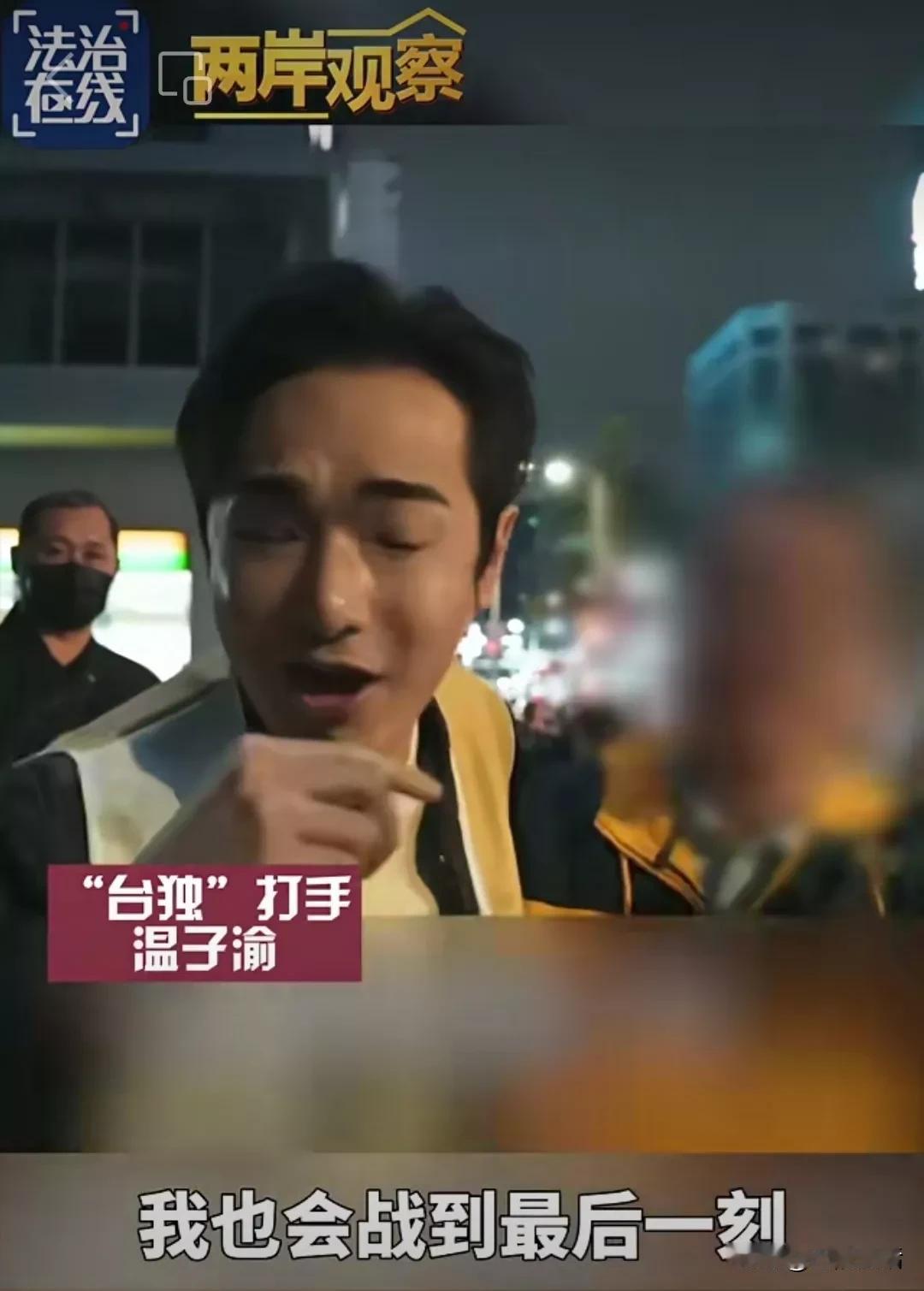 难怪泉州市公安局要立案侦查并悬赏通缉温子渝,他真的太嚣张、太反动啦! 刚才刷到央视发布的一个视频,看了真是肺都气炸了。 视频中,温子渝在台湾街头大肆宣传“台独”和“抗中保台”的言论,公开威胁主张和平和主张统一的台湾民众。只见他拿着话筒,对着摄像头嚣张地大声叫喊道:“我宣誓,中国打过来,我会上战场来,我也会战到最后一刻。” 对温子渝这个角色我以前并不熟悉,直到11月13日泉州市公安局依法对温子渝进行立案侦查并发布悬赏通告后,我才知道他网名叫“八炯”,是中国台湾省的一个“台独”网红。 这家伙年纪不大,今年才31岁,以前是靠宣传台湾美食旅游谋生的。自2018年开始,他配合民进党当场并勾结境外反华势力,制造“台独”极端言论,举报并围堵在台大陆配偶,积极充当赖清德当局制造“绿色恐怖”的爪牙,行为十分恶劣 。 尽管温子渝跳得很欢,但这种数典忘祖,逆历史潮流而动的人下场一定是很惨的。我相信:既然泉州市公安局已经对他发布悬赏通告,我们就一定能将他缉拿归案。