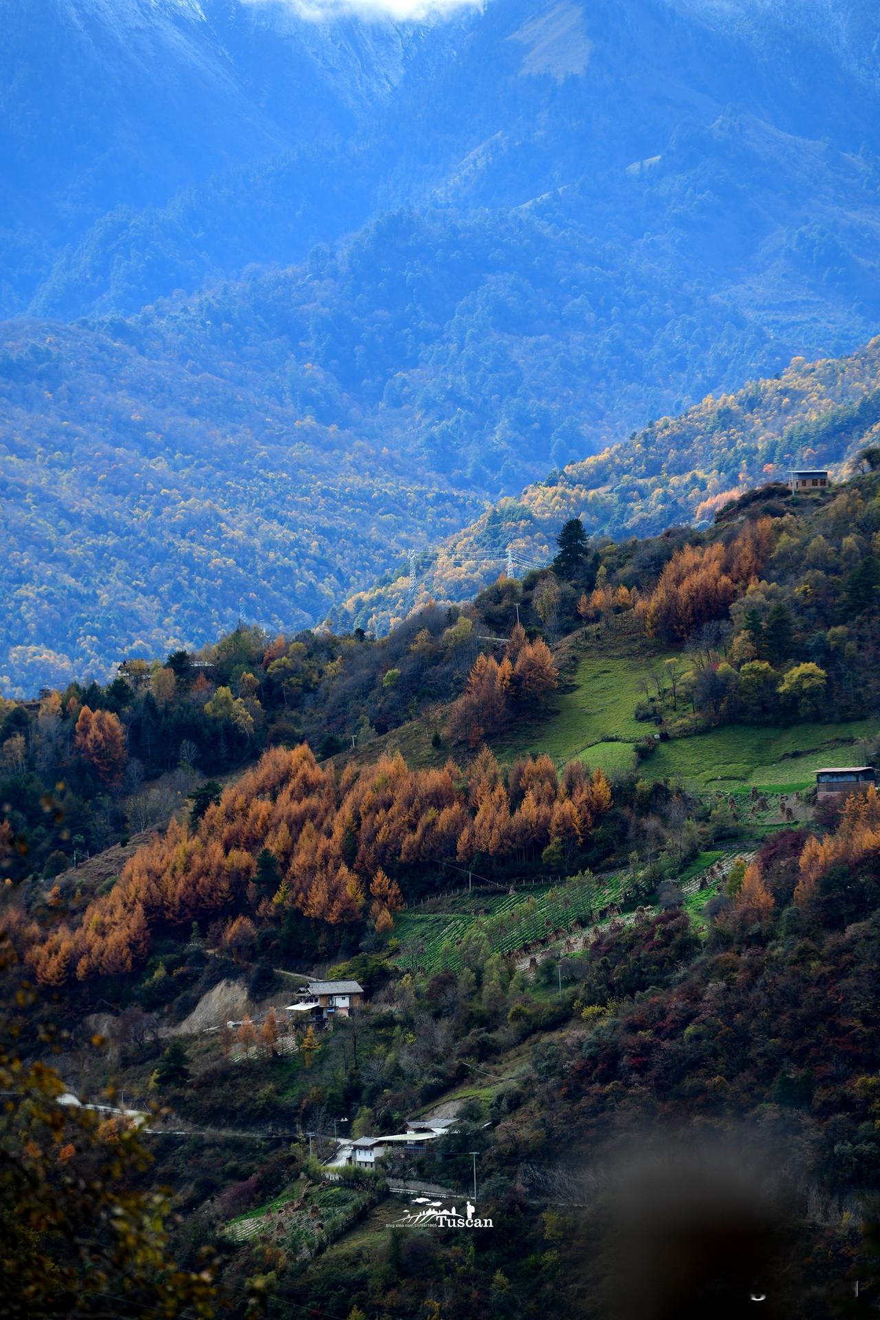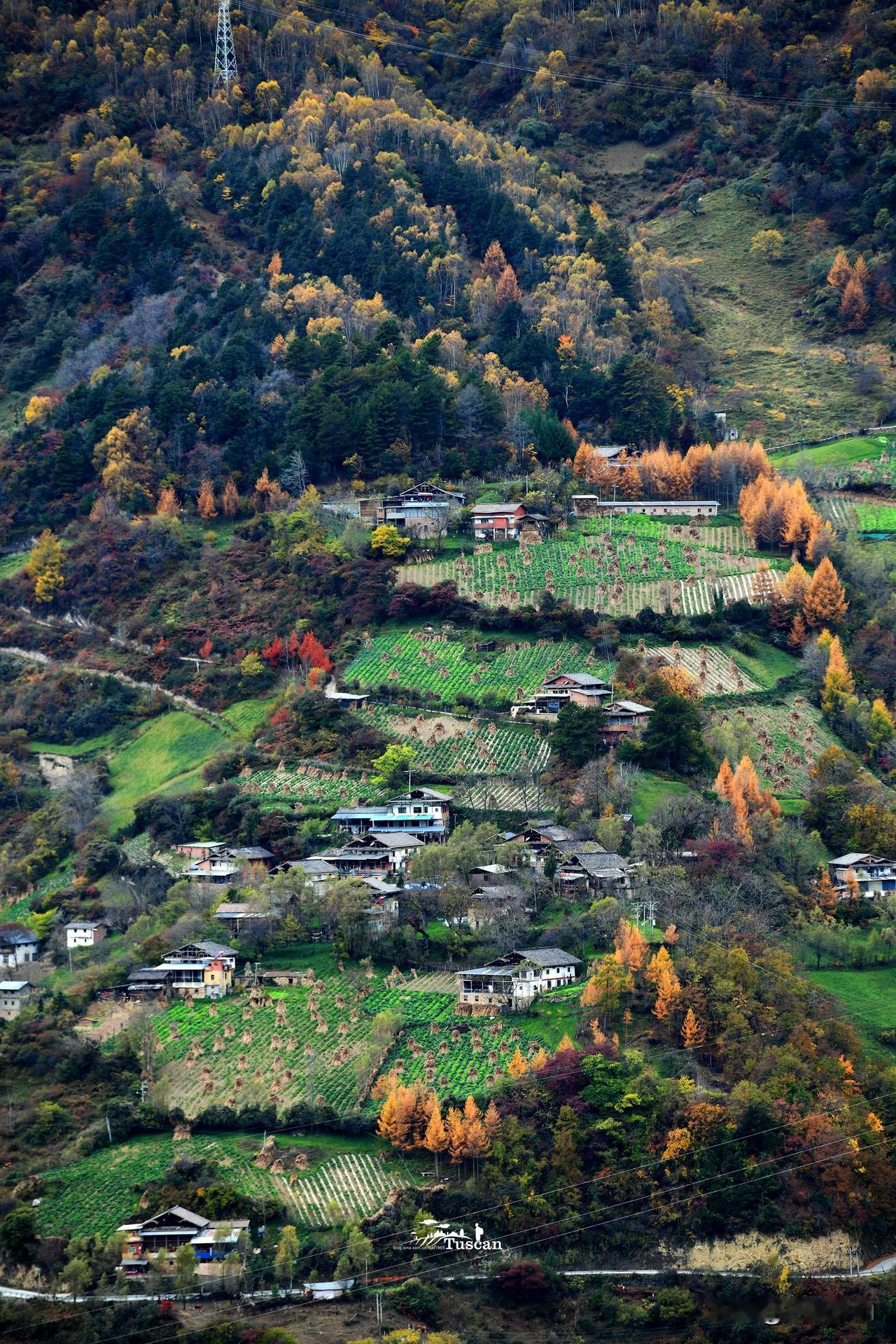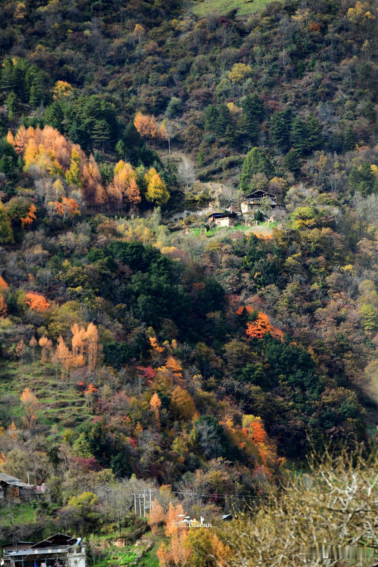 枝头树叶金黄,风来声瑟瑟!硗碛藏寨的秋天,层林尽染,彩林与藏寨相互映衬,宛如一幅