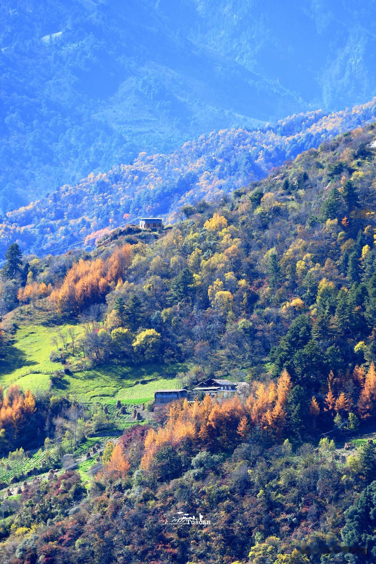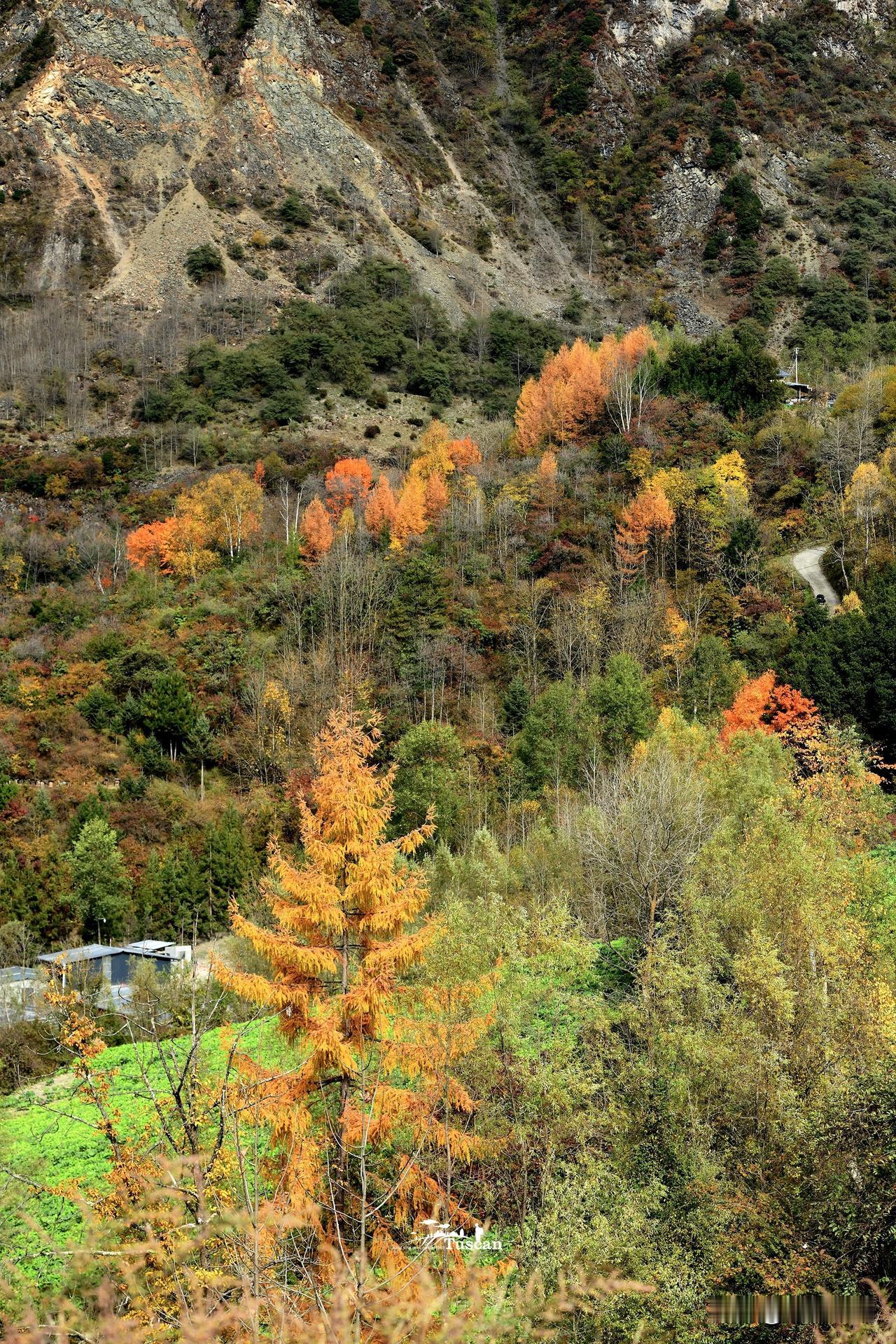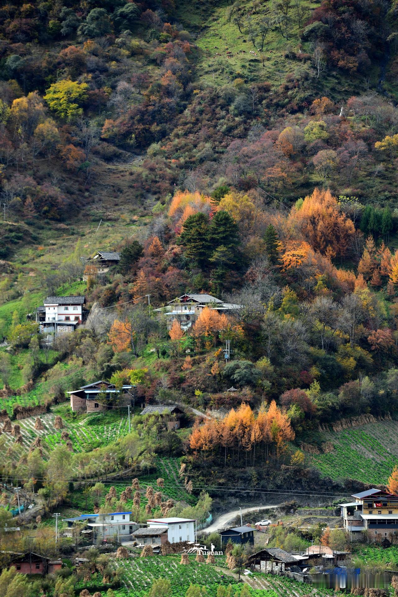 枝头树叶金黄,风来声瑟瑟!硗碛藏寨的秋天,层林尽染,彩林与藏寨相互映衬,宛如一幅