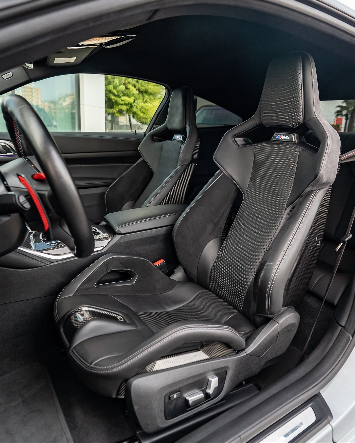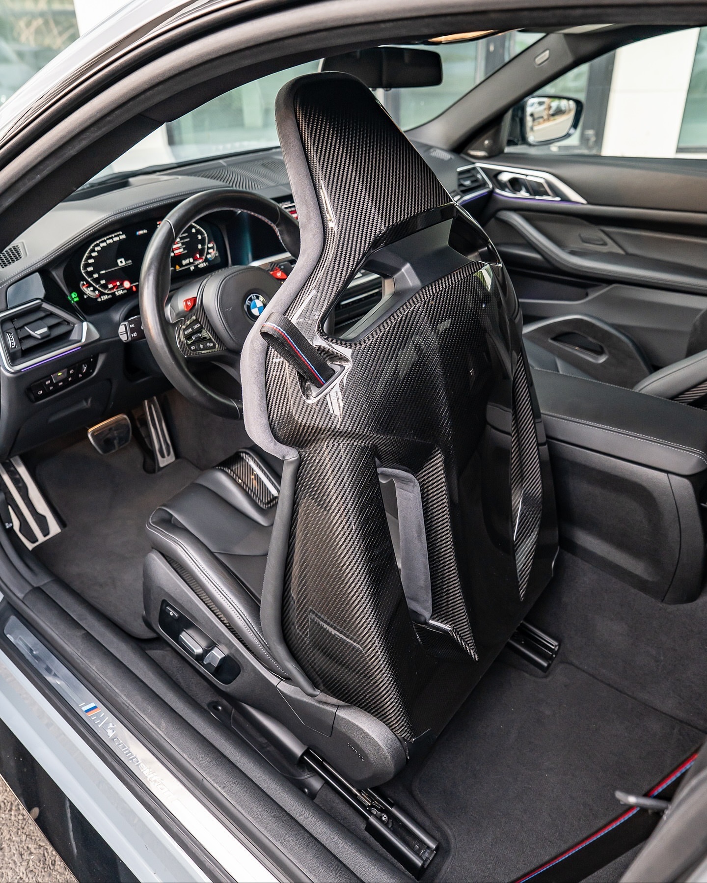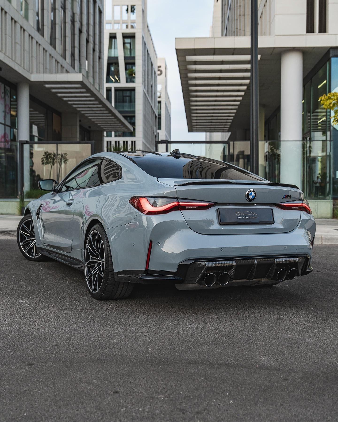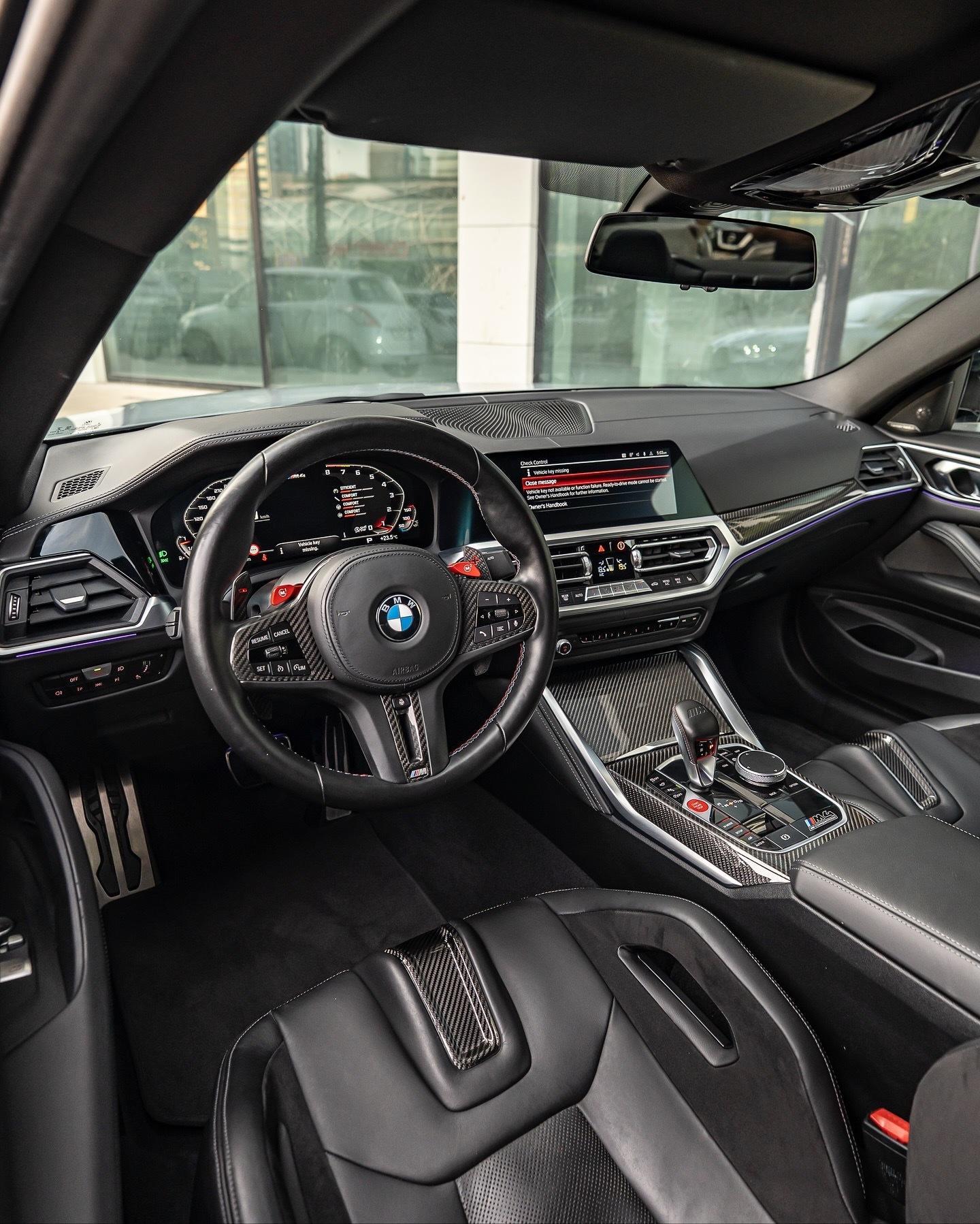 2021 款宝马 M4 competition 😈▪️巴斯索尔&赫内因文件+服务历史记录▪️布鲁克林灰外观▪️全碳纤维套装 ??🔥▪️40,000 公里 这项 M4 竞赛规格极高,包括:19 英寸前轮/20 英寸后轮双色双辐锻造合金轮毂,亮黑色和镀铬M 红色制动卡钳M 碳纤维外观套件前唇采用双色车身颜色和亮黑色涂装侧裙采用亮黑色涂装碳纤维后扩散器碳纤维前导流板碳纤维后备箱扰流板碳纤维车顶碳纤维外后视镜外壳电动折叠/加热后视镜前格栅采用亮黑色涂装车窗边框采用亮黑色涂装双圆形亮黑色镀铬排气管M 性能排气系统LED 激光大灯LED 尾灯LED 日间行车灯黑色美利奴皮革内饰搭配 M 碳纤维内饰套件黑色皮革/碳纤维多功能 M 运动方向盘,带 M 缝线M 碳纤维换挡拨片加热方向盘黑色打孔美利奴皮革/Alcantara M 碳纤维运动座椅,带银色缝线和 M4 标志照明电动可调前排座椅,带记忆功能加热/通风座椅黑色带 M 缝线安全带黑色美利奴皮革内饰,前仪表板采用碳纤维/钢琴黑/珍珠铬装饰,带银色缝线▫️黑色美利奴皮革,银色缝线,车门处配有珍珠铬装饰▫️碳纤维中控台,配有珍珠铬装饰,周围环绕银色缝线的黑色美利奴皮革▫️12.3 英寸仪表盘显示屏▫️10.25 英寸信息娱乐触摸屏,支持苹果 CarPlay 和安卓 Auto▫️LED 多色环境照明▫️哈曼卡顿环绕音响系统
