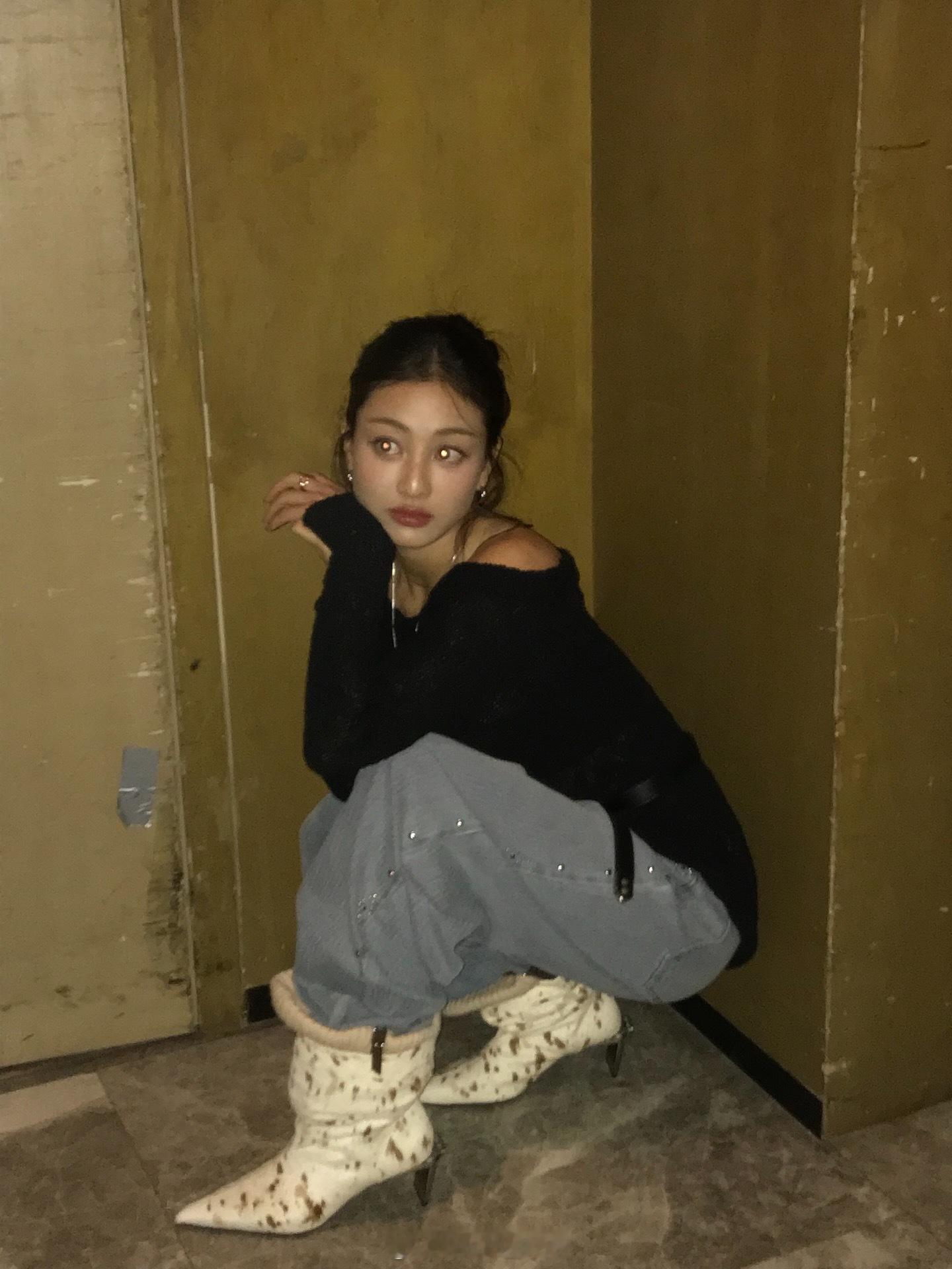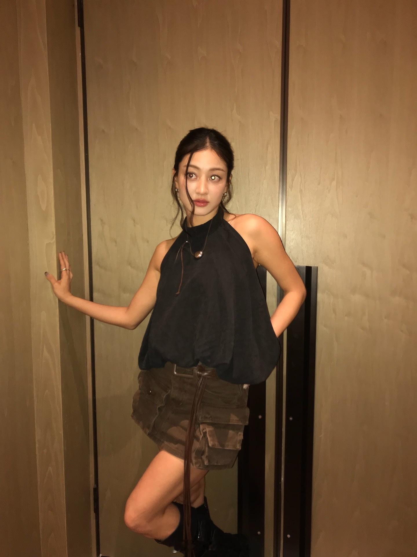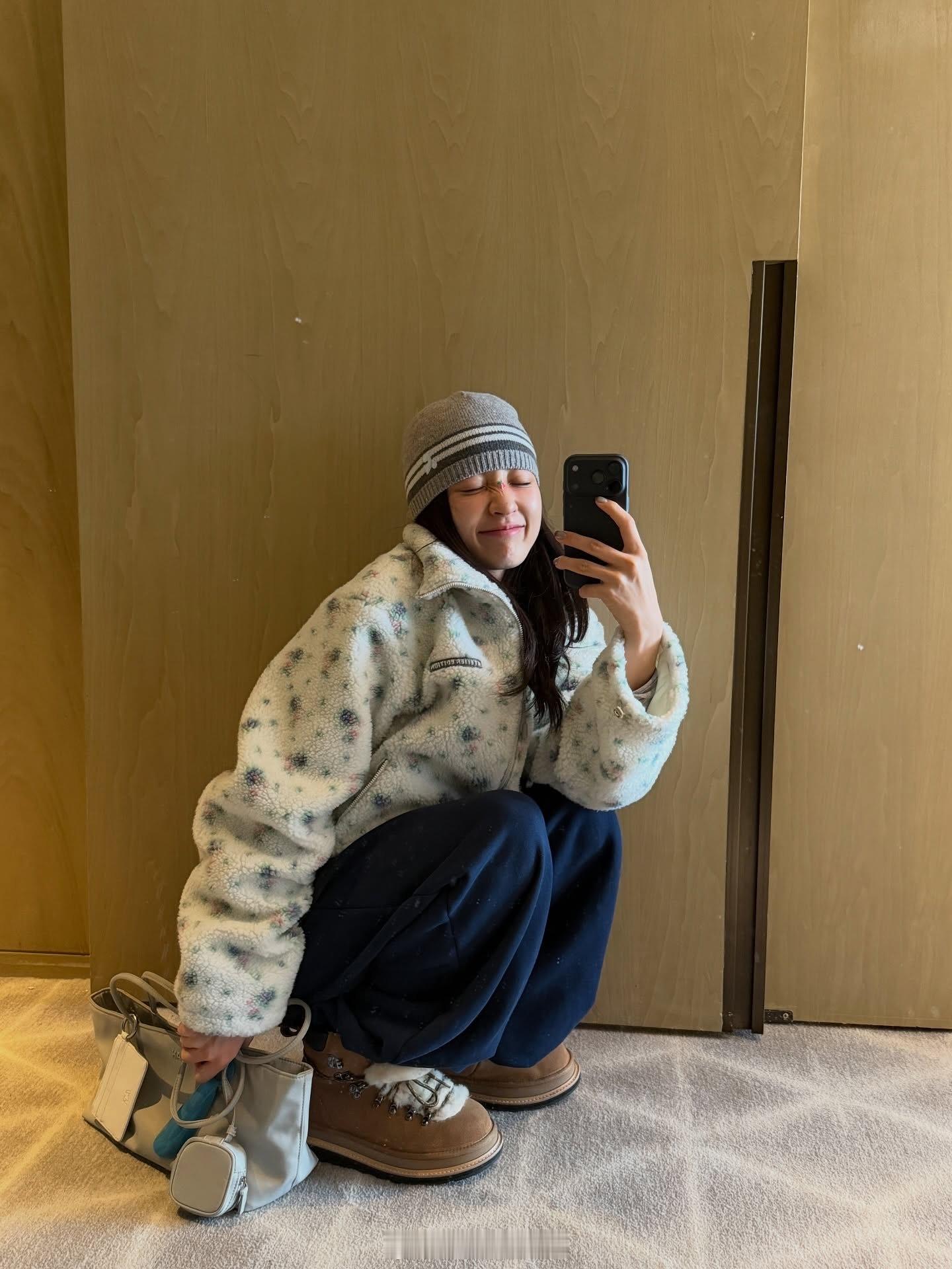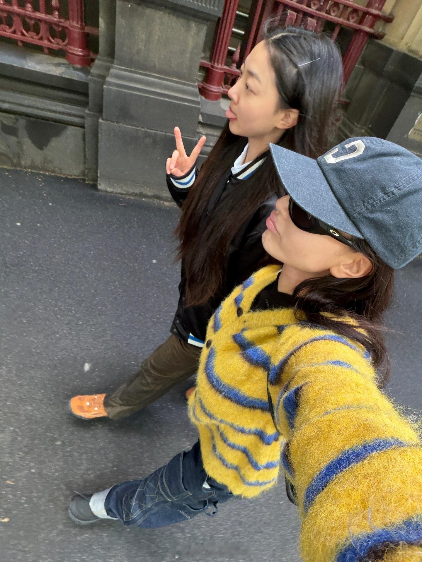 刘亦菲这条裤子挺养生,毕竟降温了肚脐眼必须护住啊