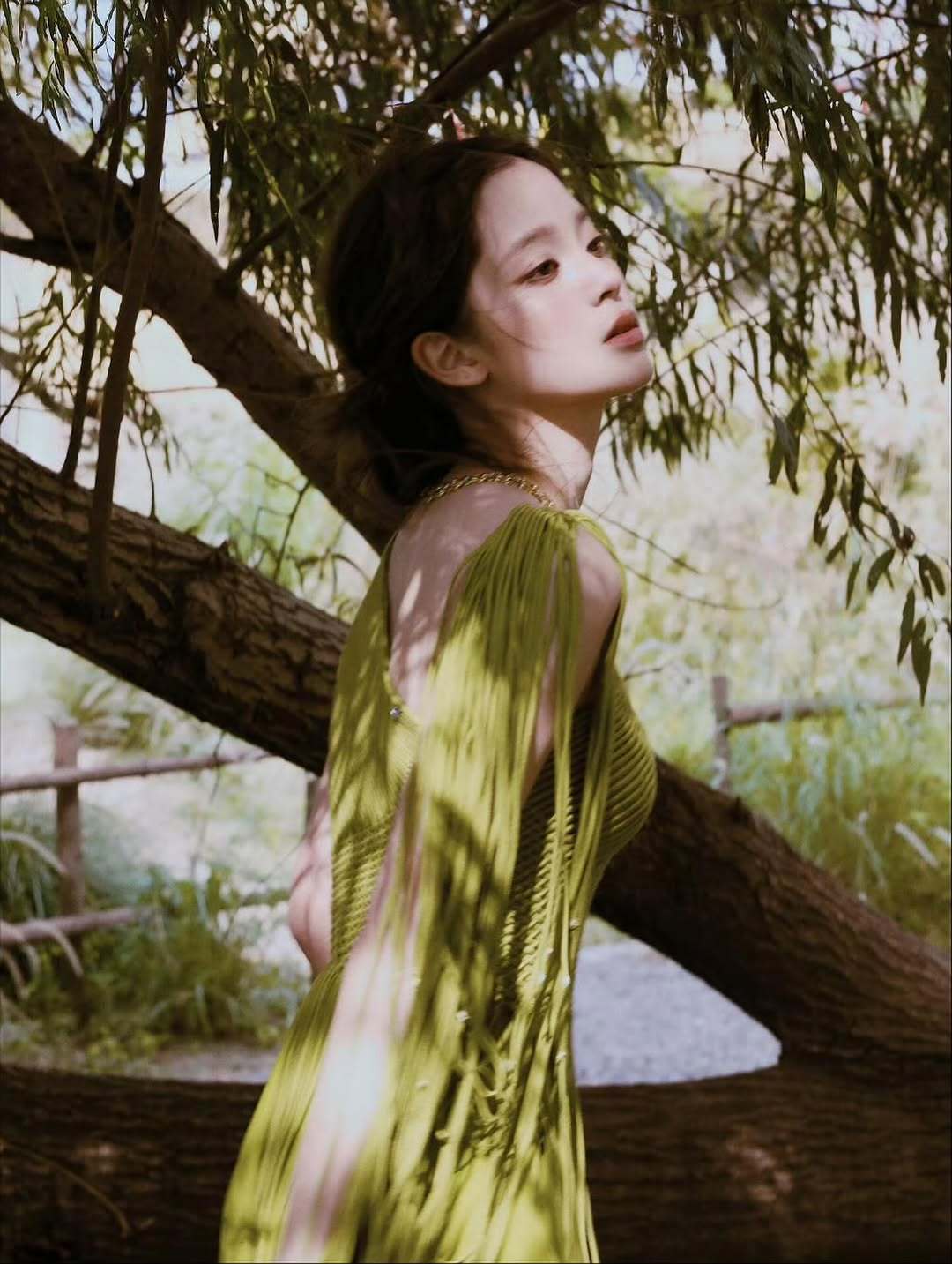 刘亦菲这条裤子挺养生,毕竟降温了肚脐眼必须护住啊