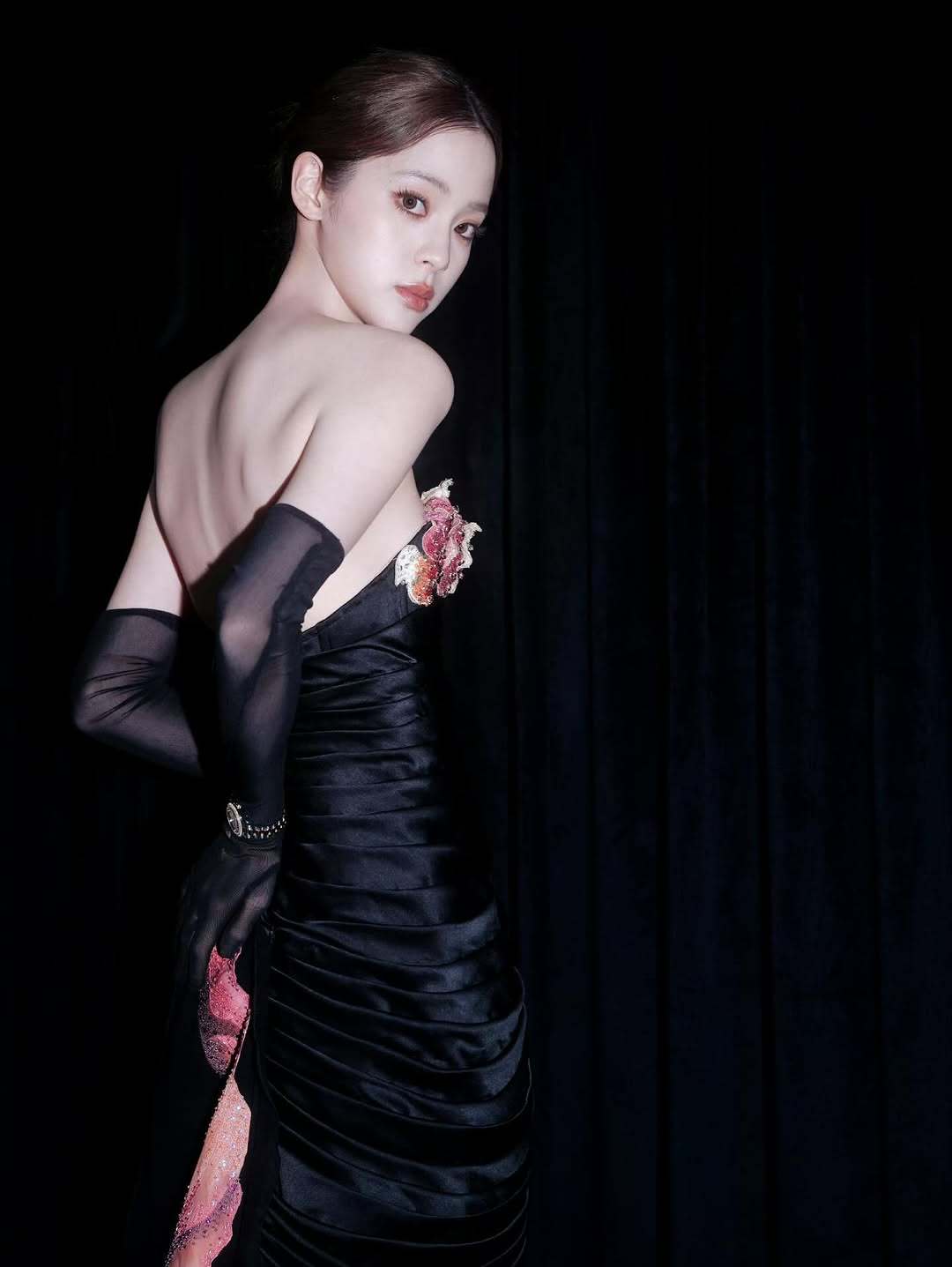 欧阳娜娜,黑色抹胸礼服现场直拍,好甜美的小姐姐