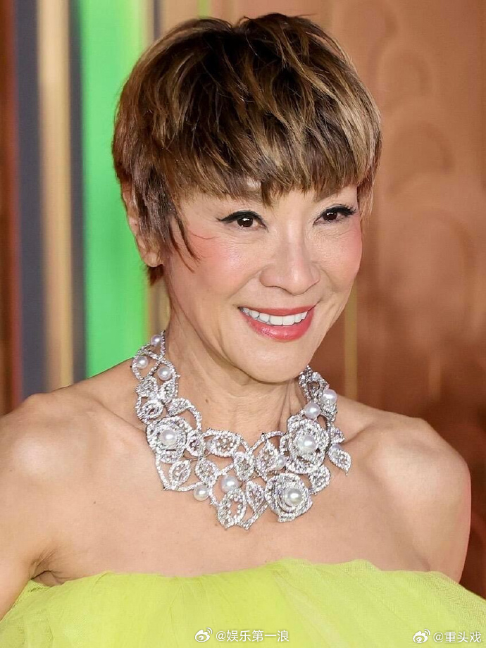 杨紫琼短发造型亮相《魔法坏女巫2》纽约首映礼,不一样的妈咪~