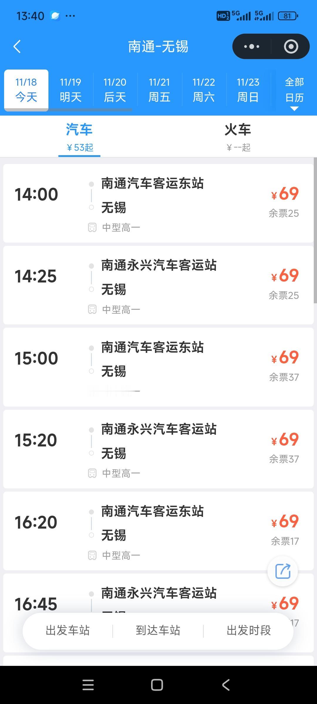 南通到苏州坐大巴车,票价是35元钱 南通到常州坐大巴车,票价是49元钱 南通到无锡坐大巴车,票价是69元钱。 什么时候把南通到无锡的大巴车票价打下来,就好了。