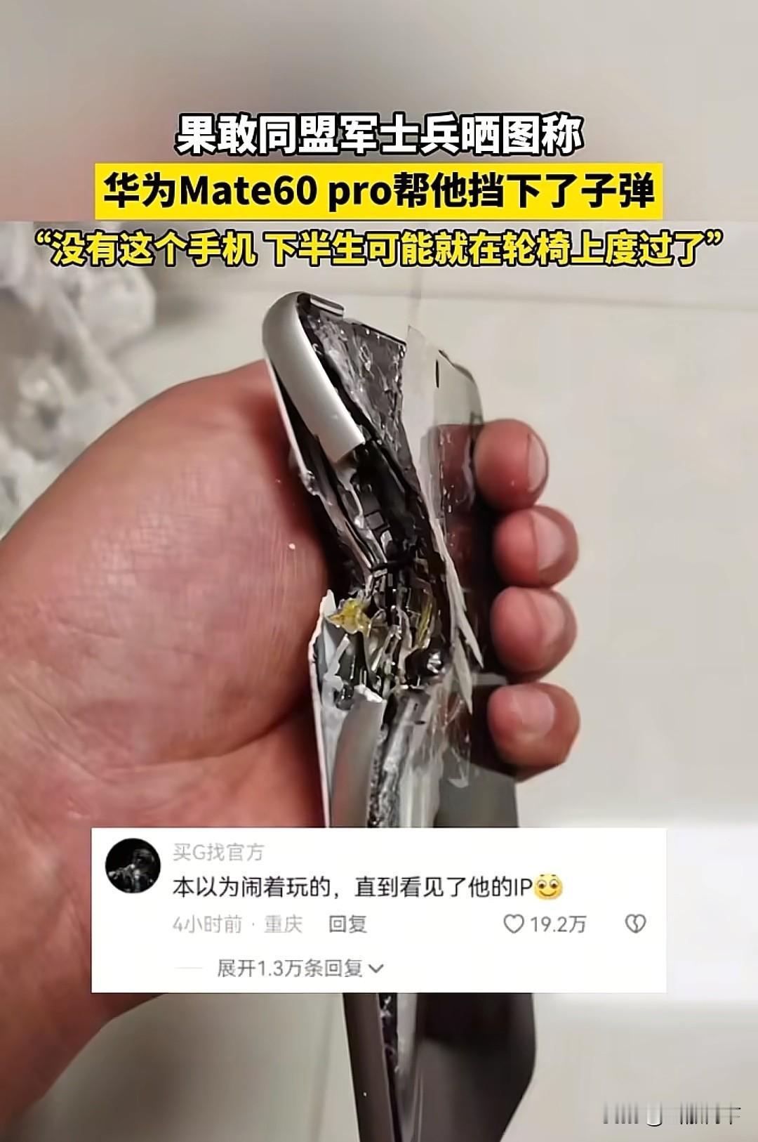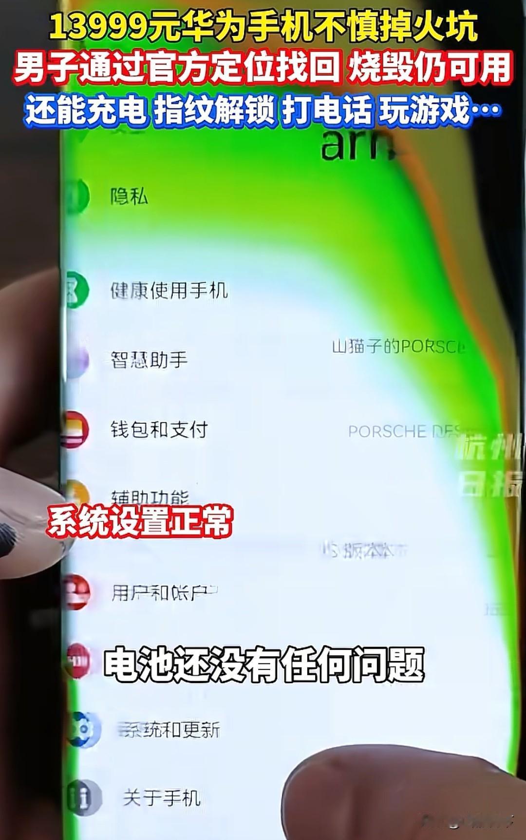 烧成这样还能用华为果然遥遥领先,男子6年前花13999购买华为30保时捷,在焚烧垃圾的时候不慎掉火坑里了,男子通过官方发的定位,在烧完的灰烬里找到了手机,看着已经被烧得面目全非的手机,没想到还能正常使用,这下让人更加期待华为Mate 80系列了。 你以为这就离谱了,要知道华为手机可是挡过子弹的,2023年,果敢同盟军士兵晒图发文称:华为Mate 60帮他挡住了子弹,要是没有它下半辈子可能就要坐轮椅了,防弹一流。 所以承认华为优秀有这么难吗,为什么每次华为上新都有很多人去黑他,我们中国有一个这么优秀的企业不应该感到自豪嘛[大笑][大笑]华为 mate80