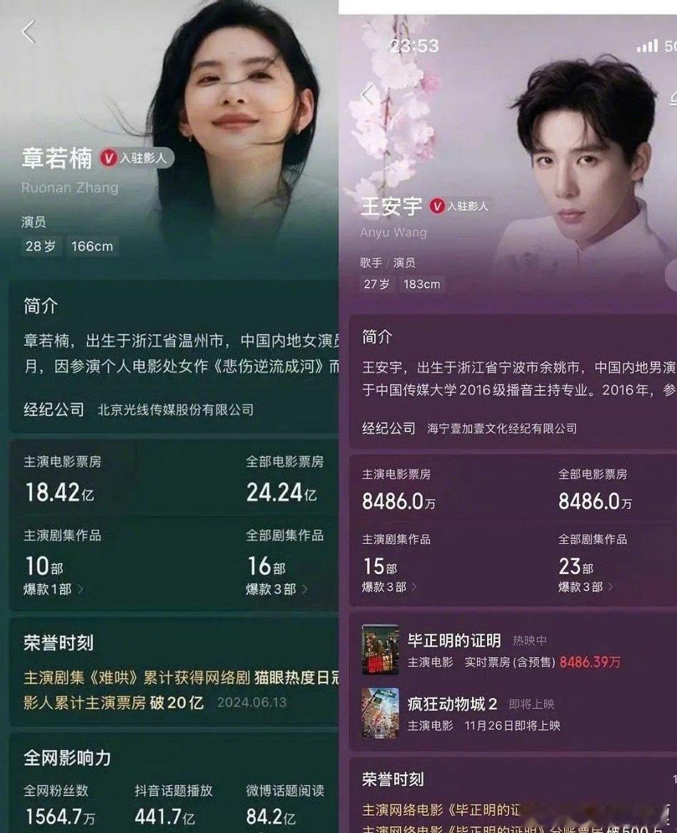 王安宇、章若楠合作《你那儿几点》,两人是平番,来看看两人实绩。