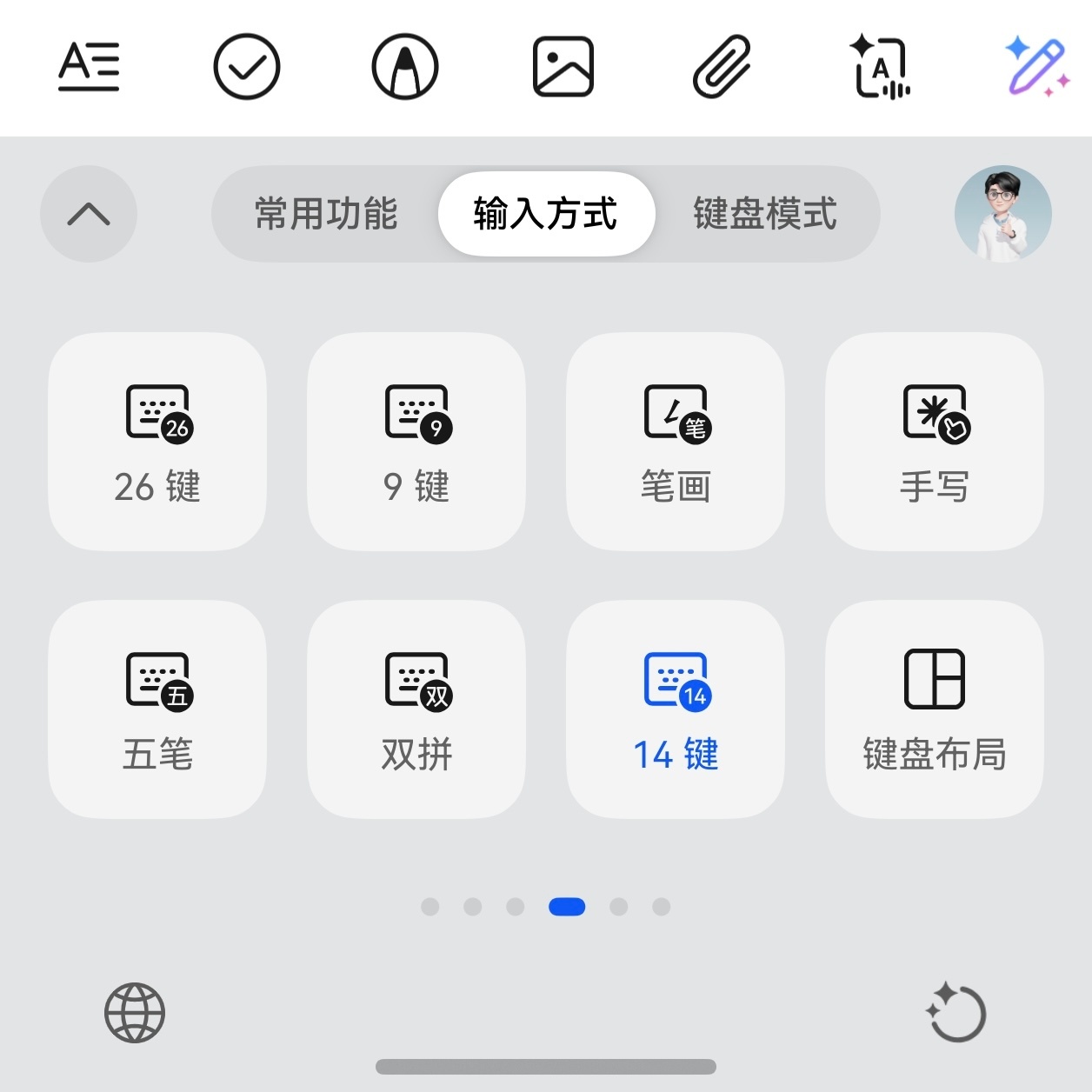 大家平时打字是用 9 键还是 26 键输入法?我最近发现同事在用小艺的14 键输入法这个布局是把 26 键的邻近两个字母拼在一起了,他说这种输入法没改你习惯的按键位置,但能明显减少按错键的情况我刚才试了试,还是不太适应按之前总要想一下
