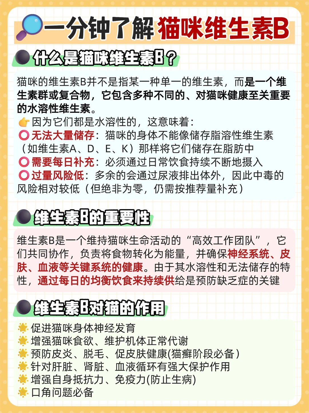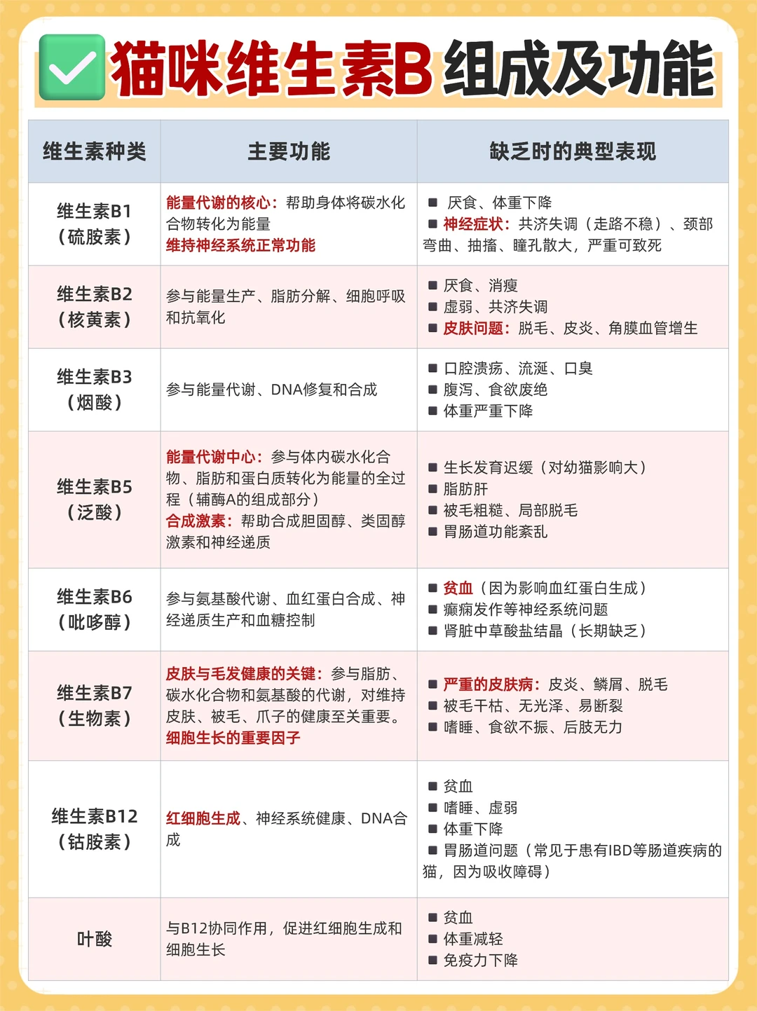 ⚠️猫咪缺乏维生素B时,会导致猫长藓反复不好、毛发无光泽且掉毛严重、口角问题、体型瘦小、挑食、贫血等问题!所以家长们一定要重视起来