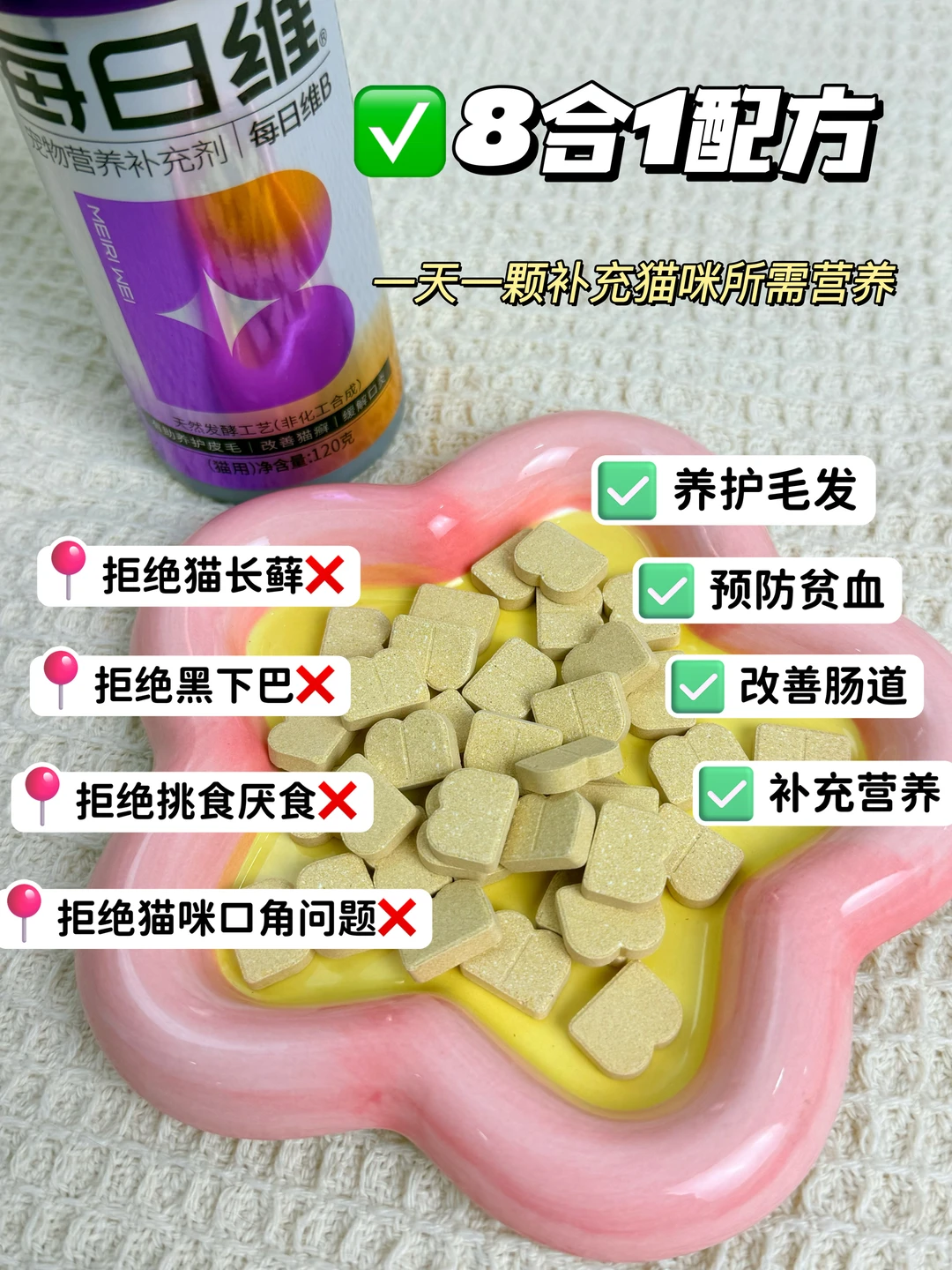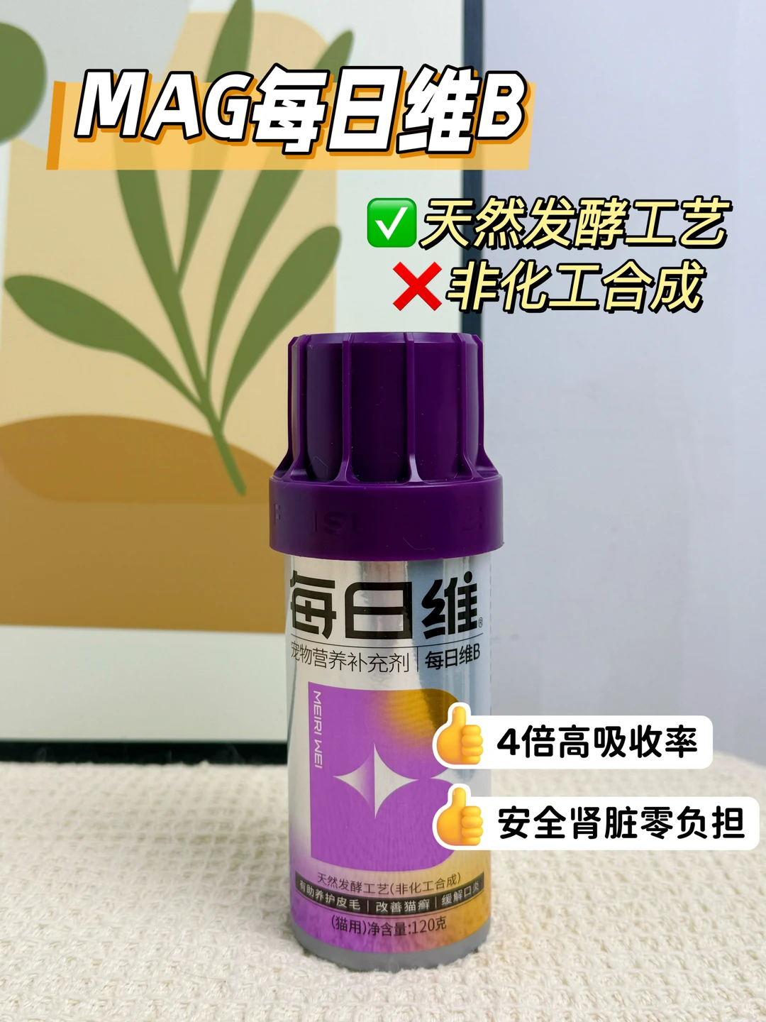 🤦♀️由于我家百万前段时间很挑食、总是舔塑料袋、纸壳子,在做完功课后,才知道是该补充维生素B了。👉入手了MAG每日维B,采用的天然发酵工艺!✨ 比化工合成的维生素好吸收太多,直接吃1片顶4片,生物利用率拉满,很安全猫咪肾脏0负担。✔每一片富含8种天然酵母B族维生素,营养一步到位~