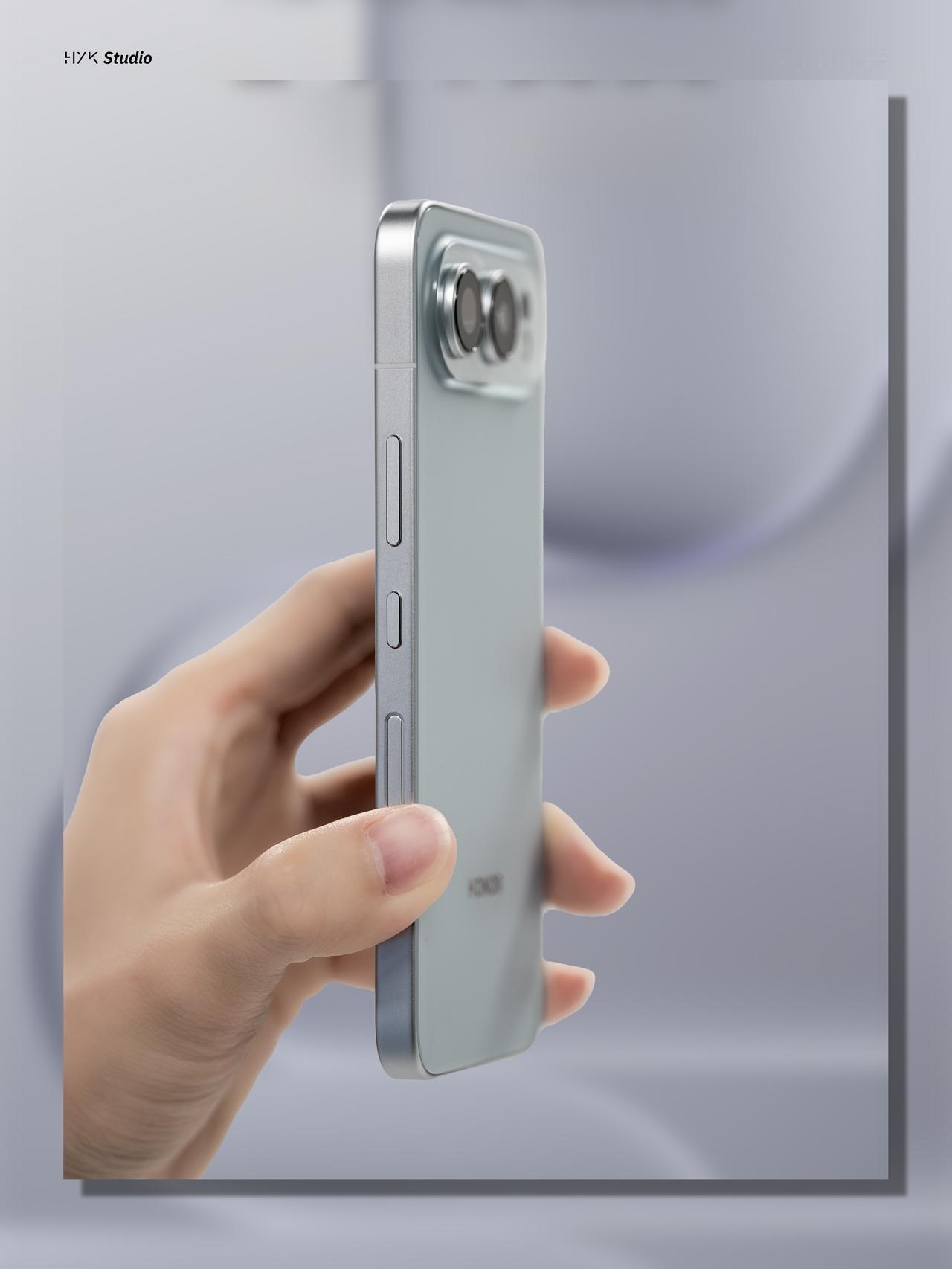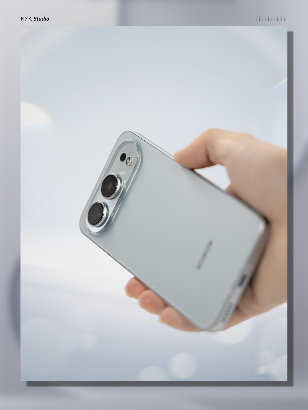 HYK图赏|荣耀500 这款是“月光银”版本。机身像被月光镀了层银一样。极窄黑边搭配上直边大圆角的设计,正面观感不错。镜头Deco采用的是一体冷雕工艺,搭配上横向镜头模组,竖着握持不会遮挡镜头,打游戏横向握持的时候还能有类似“手柄”的体验。怎么样,看完这组,你心动了吗