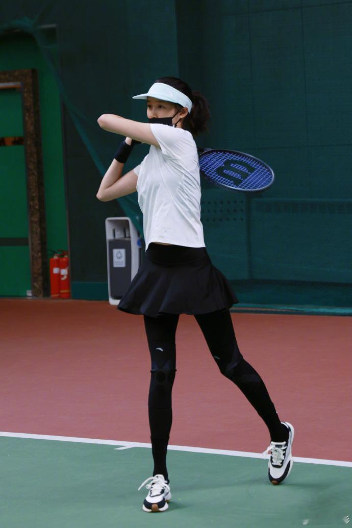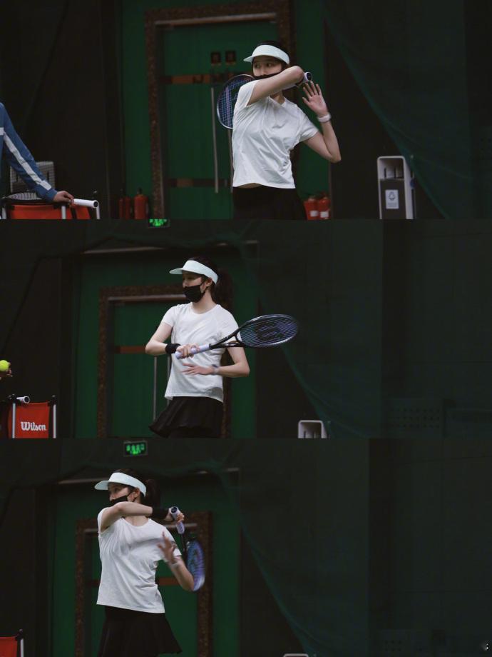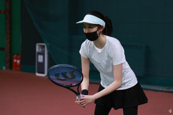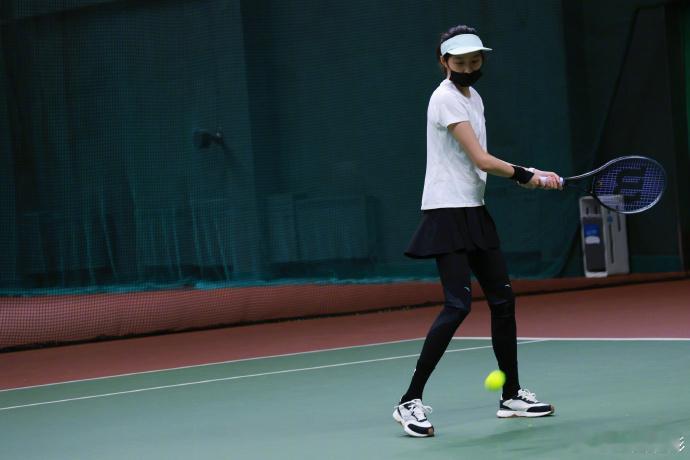 网球场出现关晓彤戴口罩挥拍的身影,活力满满动起来享受运动,少见的运动场景叠加细致