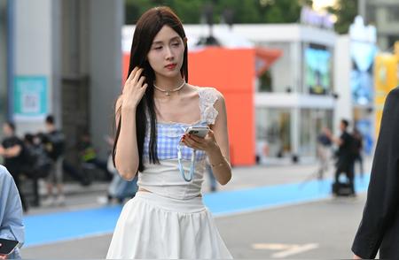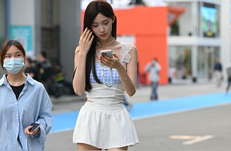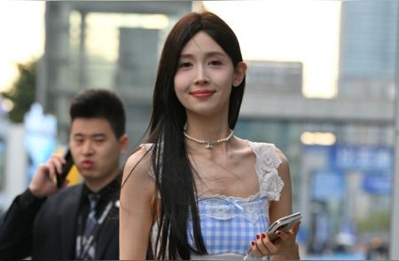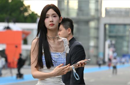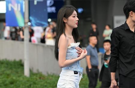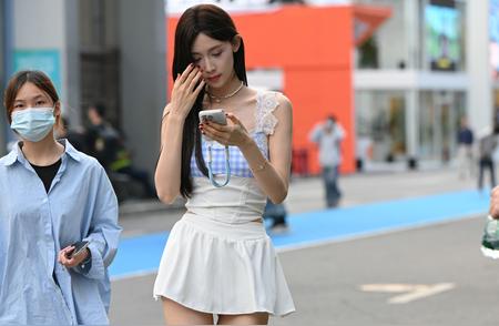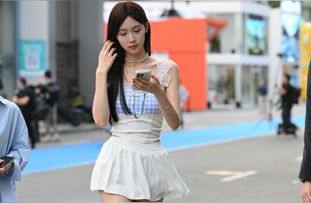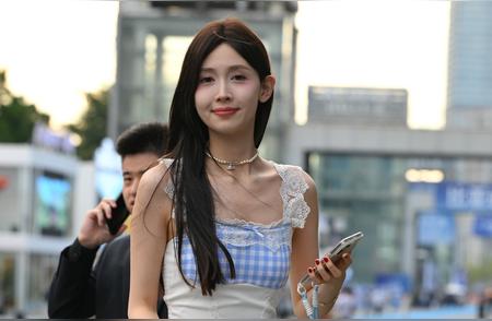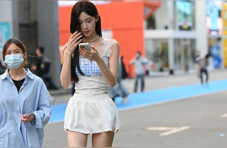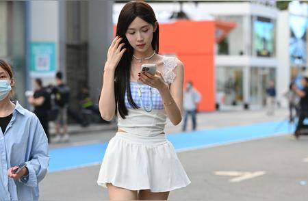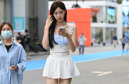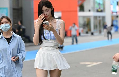街头清新风来袭!美腿小姐👀街头偶遇一道清新风景线!这位小姐姐身穿蓝白...