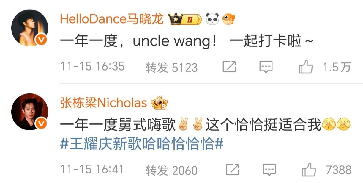 谁不羡慕王耀庆的内娱人脉!发热辣四单收获伯远、齐思钧、马晓龙等好友集体打call,74年唱跳界怪物新人,这好人缘真的让人狠狠佩服!