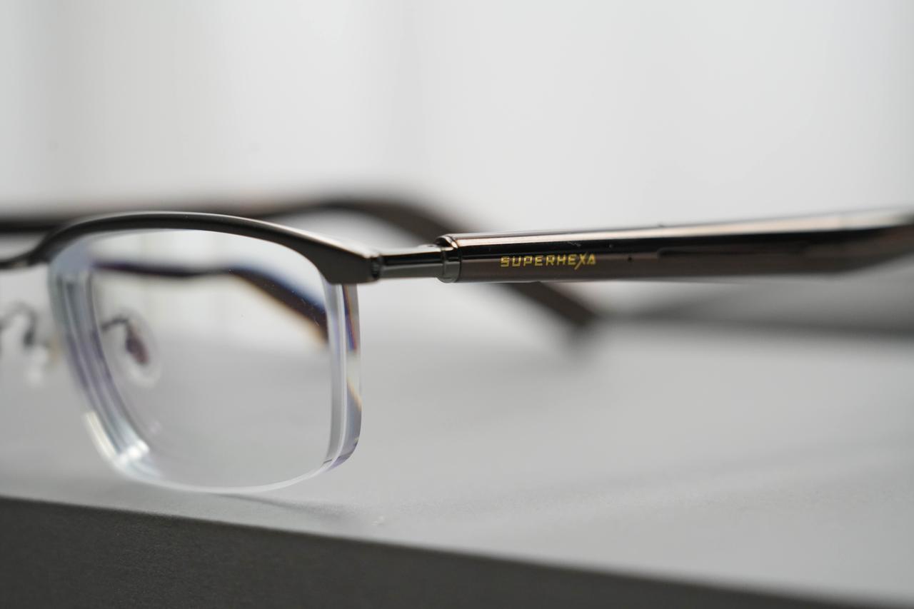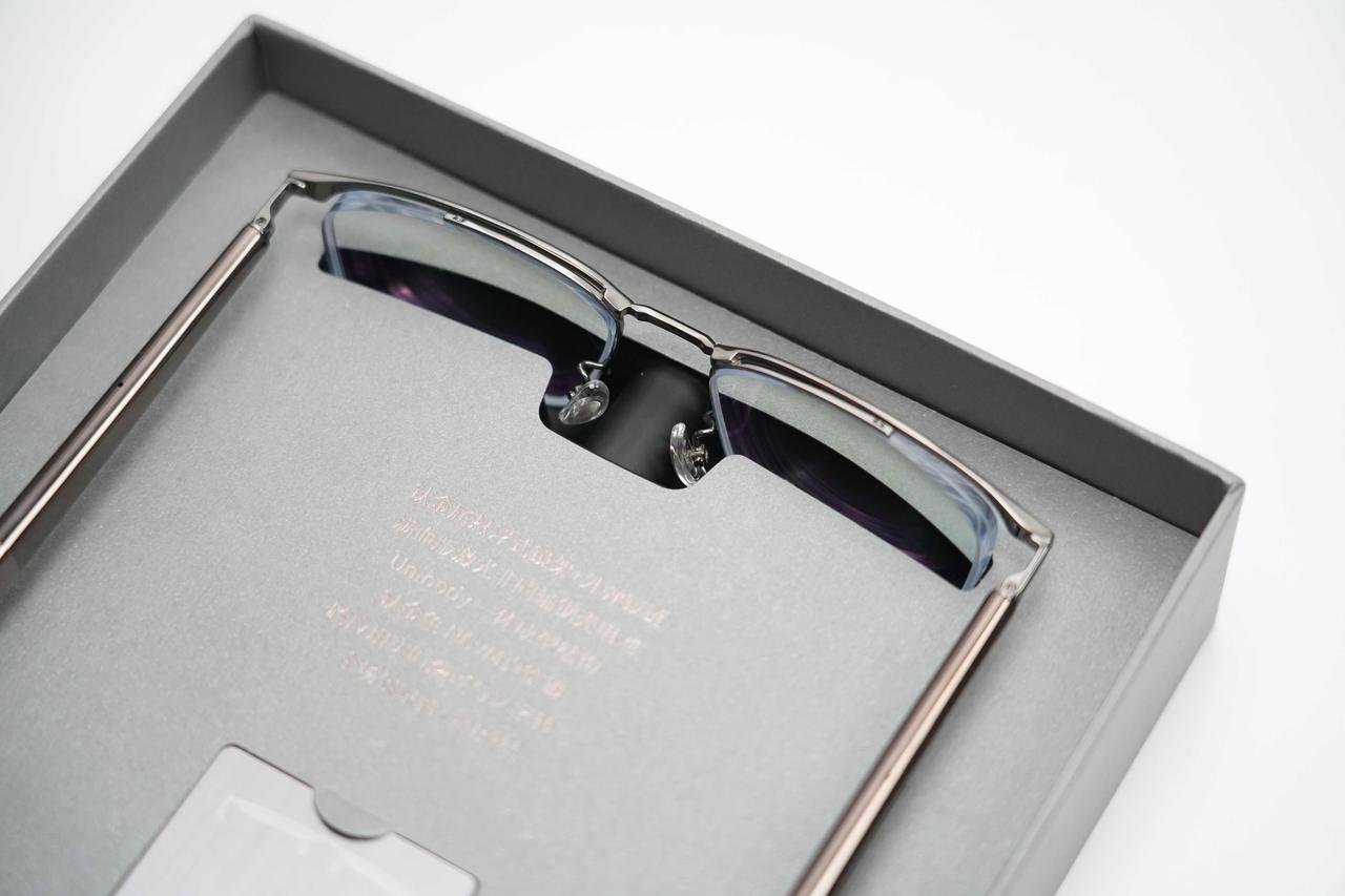 我入手的这个是钛半框款,采用航空级钛金属材质兼顾耐用性与轻盈感,前腿采用Uni