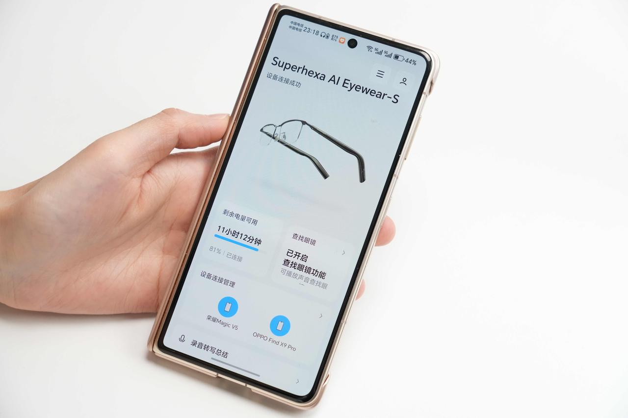 我入手的这个是钛半框款,采用航空级钛金属材质兼顾耐用性与轻盈感,前腿采用 Unibody 一体成型工艺,最细处仅有5mm,机身呈现卓绝金属质感,而且特别版镜腿处印有金色手写体 “Special Edition”,这个就给人很高级的感觉。从整个外观上来看,界环AI音频眼镜特别版和普通眼镜相差无几,并且在佩戴舒适度和重量方面也依然延续了普通眼镜的优势,整机重量只有28.5g,佩戴时不会感受到对耳鼻造成压迫感,即便是全天佩戴也能保持 “轻盈无感” 的体验,是一款颜值高、佩戴舒服的智能眼镜。 再来说说功能,除了蓝牙耳机的功能,界环AI音频眼镜特别版在AI方面的能力确实让我感受到了便捷,比如说通知播报功能简直就是我的刚需,在开车或者运动时,不方便使用手机看消息,界环AI音频眼镜就能将全部信息的实时逐字播报,并且还可以设置成AI通知播报,对来自不同 APP的多条、多人信息进行AI汇总后输出播报。 还有随身秘书——小苏,小苏相当于一个助手,可根据我反馈记录喜好并匹配对应风格回应,还支持长记忆功能,在使用的过程中,持续学习用户使用习惯,越用越懂你。小苏智能的原因是通过搭载的AI大模型,理解用户的意图并作出回答,比如查询天气、新闻资讯、景点介绍等等,遇到不会的问题,有什么问题,直接问小苏,是不是挺好玩的?它还支持面对面翻译、同声传译、音视频翻译和通话翻译等功能,和国外朋友沟通无障碍。 界环AI音频眼镜特别版支持同时连接两台设备,我使用习惯是连一台手机、一台电脑,线上会议、日常通话时可以丝滑切换,避免频繁断开重连这种繁琐操作,提升工作效率。在续航方面也很顶,按我的使用习惯来说,日常听音乐、刷视频、接打电话,充满电可以使用大概4天,完全不用每天充电。 界环AI音频眼镜特别版使用这段时间,我觉得优秀于耳机的是,它避免了耳机容易脱落的问题,还可以通过手势和语音操作,来完成指令,再配合“小苏”,大大降低用户对手机的依赖。如果选智能眼镜,推荐入手界环AI音频眼镜特别版。