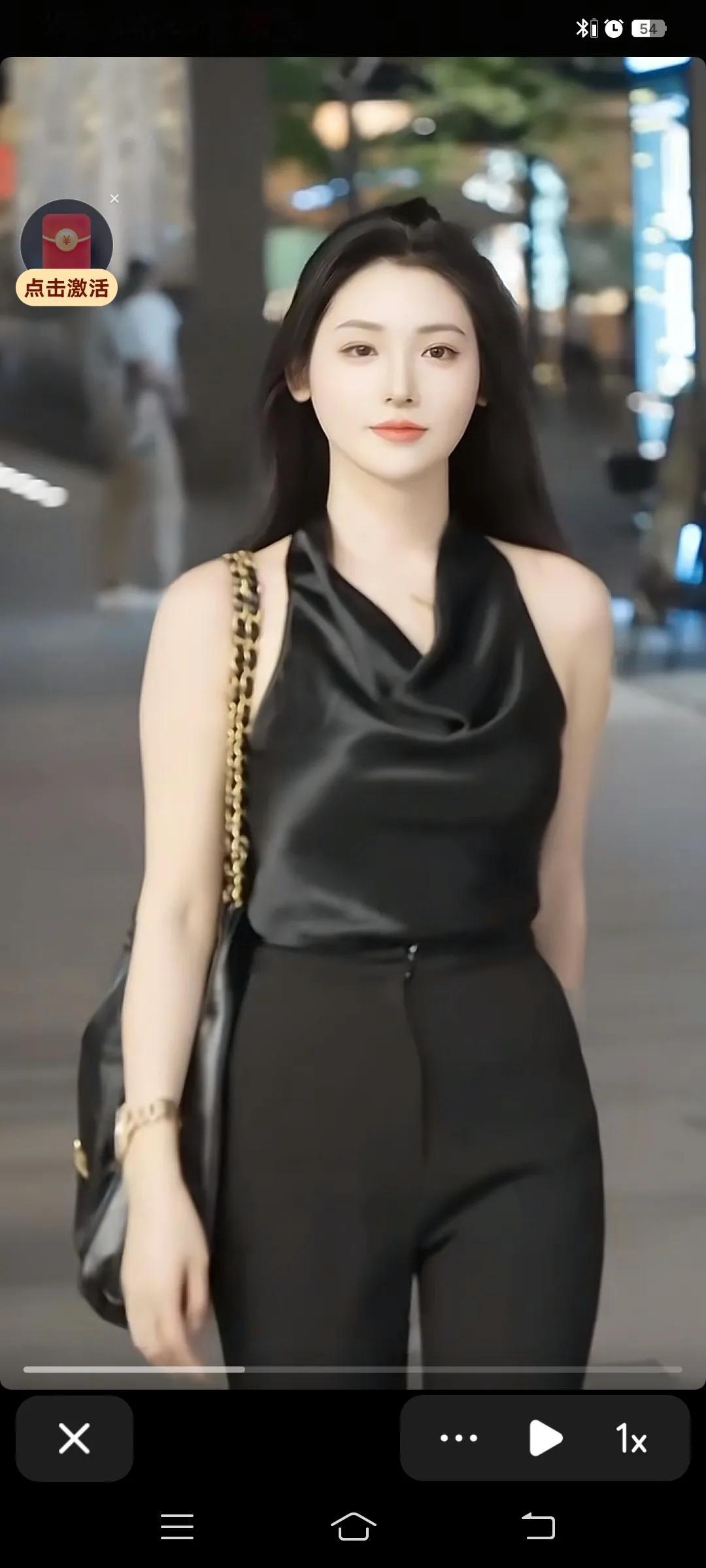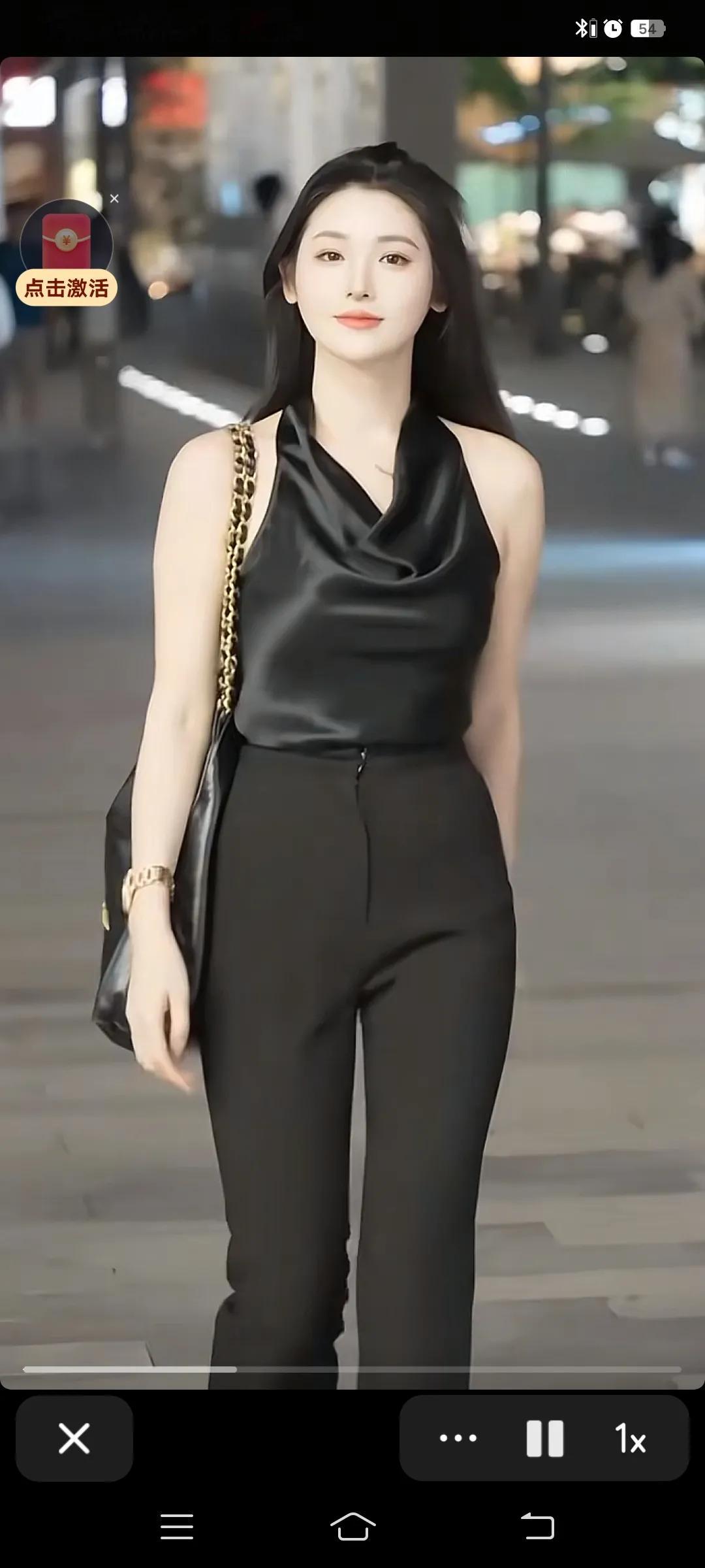 街拍美女 都市女郎的优雅穿搭,黑色丝质上衣搭配高腰裤,时尚又大方性感黑裙穿搭
