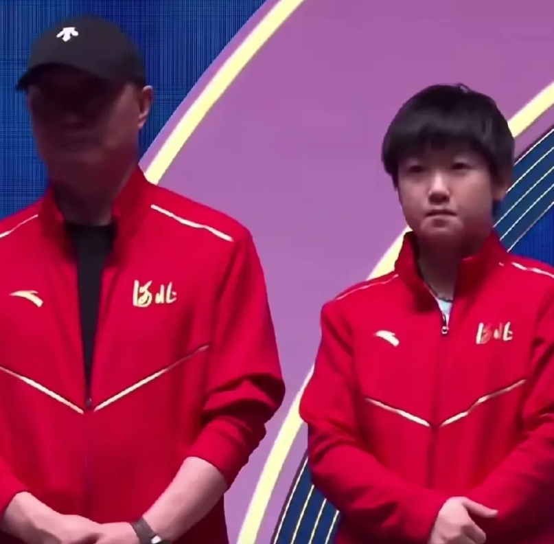 再看看孙颖莎和教练,都黑着脸,开心不起来。尤其教练,还戴着帽子,就是觉得很不好受,想遮挡一下。
