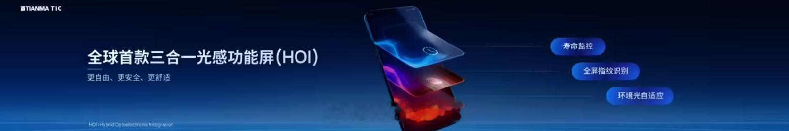 天马今天发布了全球首款三合一光感功能屏,集成OLED寿命监测、全屏指纹识别、
