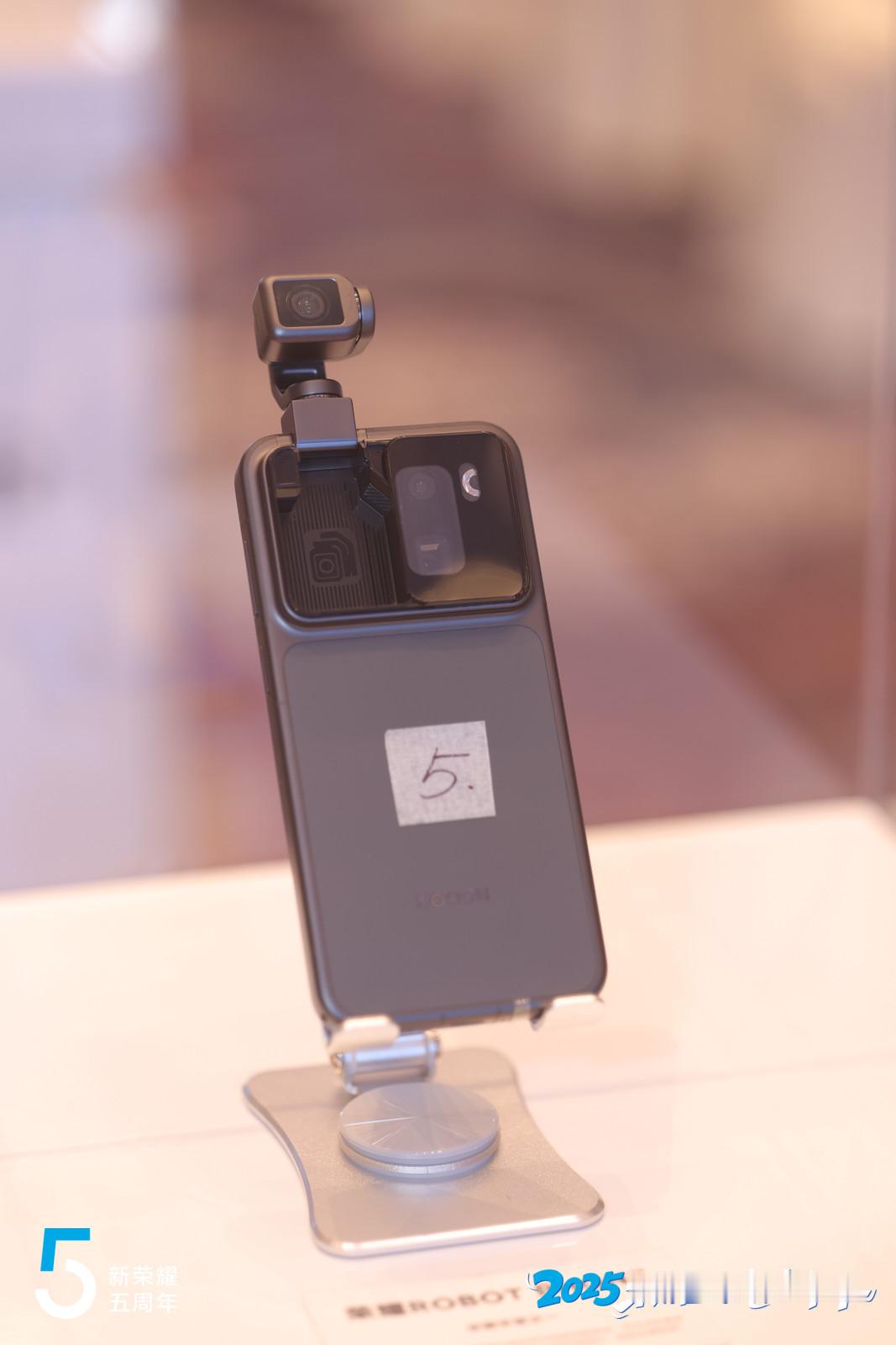 荣耀ROBOT PHONE实拍图来了,我看应该是好几个版本,据说最有可能量产的就是背后数字“5”的这个版本,大概率明年你能看到真机。