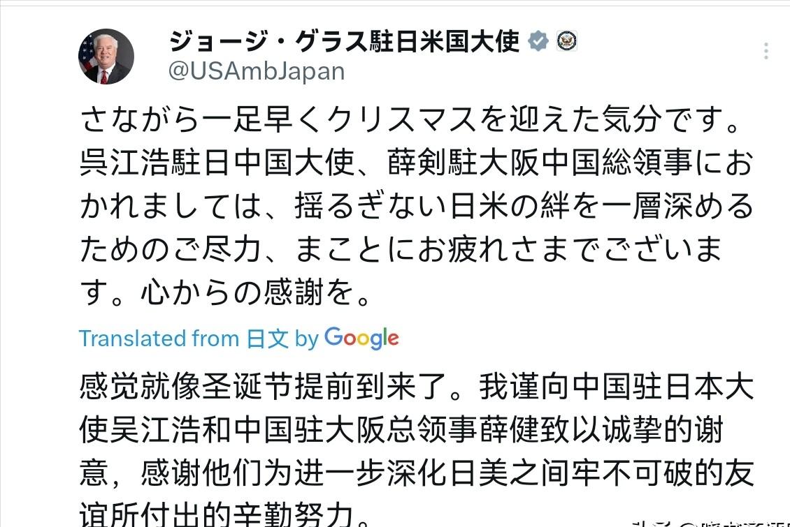 完全不惯着!美国驻日大使被怼的哑口无言!在美国驻日大使格拉斯表示,“感觉就像圣诞