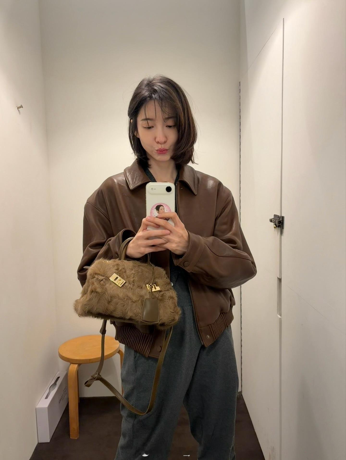 刘亦菲这条裤子挺养生,毕竟降温了肚脐眼必须护住啊