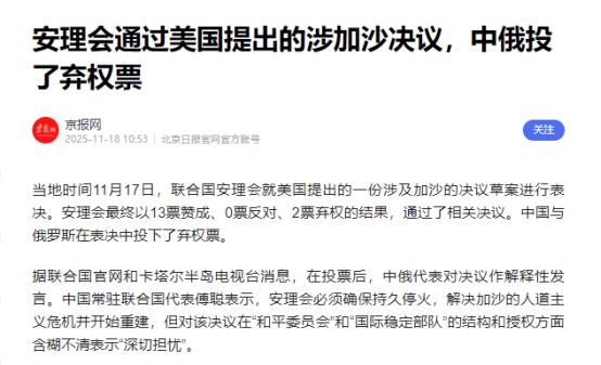特朗普公开表态,感谢中国!高市早苗此时作何感想!11月18日,根据俄罗斯卫星通讯社报道,美国总统特朗普发文称,难以置信,联合国安理会就在几分钟前投票认可和批准了和平理事会,祝贺全世界。感谢联合国,感谢安理会所有成员国,感谢中国、俄罗斯、法国和英国。   这事儿要是放在几年前,谁都不敢信。以前特朗普提到中国,要么是喊着加关税,要么是挑贸易摩擦,这会儿突然正经八百说“感谢”,反差大得像换了个人。他的感谢可不是客套话,里面藏着实实在在的政治算盘。   特朗普心里门儿清,安理会常任理事国手里的否决票就是“王牌”。他主推的这个涉加沙提案,核心是在加沙建个“和平理事会”当临时管理机构,再派一支国际维稳部队驻扎两年,本质上是按美国的思路安排加沙战后秩序。这份提案要想通过,中俄这两票至关重要。   只要中俄任何一方投反对票,这个提案就得直接泡汤。结果投票时,中俄都投了弃权票,13票赞成的结果让提案顺利通过,成了安理会第2803号决议。特朗普这才松了口气,赶紧发文感谢,生怕别人忘了这份“外交功绩”是靠中俄“放行”才成的。   要说中俄为啥不反对,不是没顾虑。中国代表就明确说了,这份提案起草得太急,很多安理会成员的意见都没采纳,中方对这种做法很失望。但看着加沙那面的惨状,平民缺吃少穿,停火迫在眉睫,权衡之下还是投了弃权票,算是给人道主义留条路。   美国为了让提案过审,早早就铺了路。他们拉上沙特、埃及、土耳其等八个穆斯林国家发联合声明,集体呼吁安理会批准这个方案。这么做一是想营造“伊斯兰世界都认可”的氛围,二是故意给中俄施压,堵上反对的理由。   中美在这种重大国际议题上达成“默契”,实在少见。要知道之前在贸易、科技领域,两边针锋相对的时候多了去了。可这次在加沙问题上,双方都看到了停火的紧迫性,算是难得的共识。   最坐不住的可能要数日本政客高市早苗了,高市早苗一直是日本右翼里的“强硬派”,之前在各种场合,只要涉及中美议题,她总爱站出来说些附和美国、针对中国的话。这会儿美国前脚刚公开感谢中国,后脚她的立场就显得格外尴尬。   日本在联合国的投票习惯,向来是跟着美国走。之前几次巴以相关的决议投票,日本都投了赞成票,哪怕美国后来反手否决,日本也还是表态“支持美国的外交努力”。可这次情况不一样了,美国的提案能过,全靠中俄弃权,等于中国间接帮了美国一个忙。   高市早苗要是还按以前的套路说话,要么就得承认中国在国际事务里的分量,要么就得硬着头皮反驳,可怎么说都不对味。反驳吧,等于和刚感谢中国的美国唱反调;认账吧,又跟她一直以来的政治立场相悖。   更让她纠结的是,日本一直想在中东事务里刷存在感,可这次安理会的核心博弈,根本没日本什么事。中美俄英法五个常任理事国敲定了大方向,日本只能跟着投票,连参与核心磋商的资格都没有。这种“被边缘化”的感觉,对一心想提升日本国际地位的高市早苗来说,肯定不好受。   特朗普的感谢文发出来后,国际舆论都在讨论中美这波“罕见共识”。有人说这是美国不得不借重中国的影响力,也有人说这是中国从人道主义出发的理性选择。不管怎么说,加沙的平民总算能看到点停火的希望了。   高市早苗这会儿估计还在琢磨怎么表态。是跟着美国一起感谢中国,还是装没看见?是继续坚持以前的强硬口径,还是悄悄调整说法?不管她怎么选,都绕不开一个事实:国际政治从来不是非黑即白,中国的分量,谁都没法忽视。特朗普都懂的道理,高市早苗要是想不通,以后的路只会更难走。