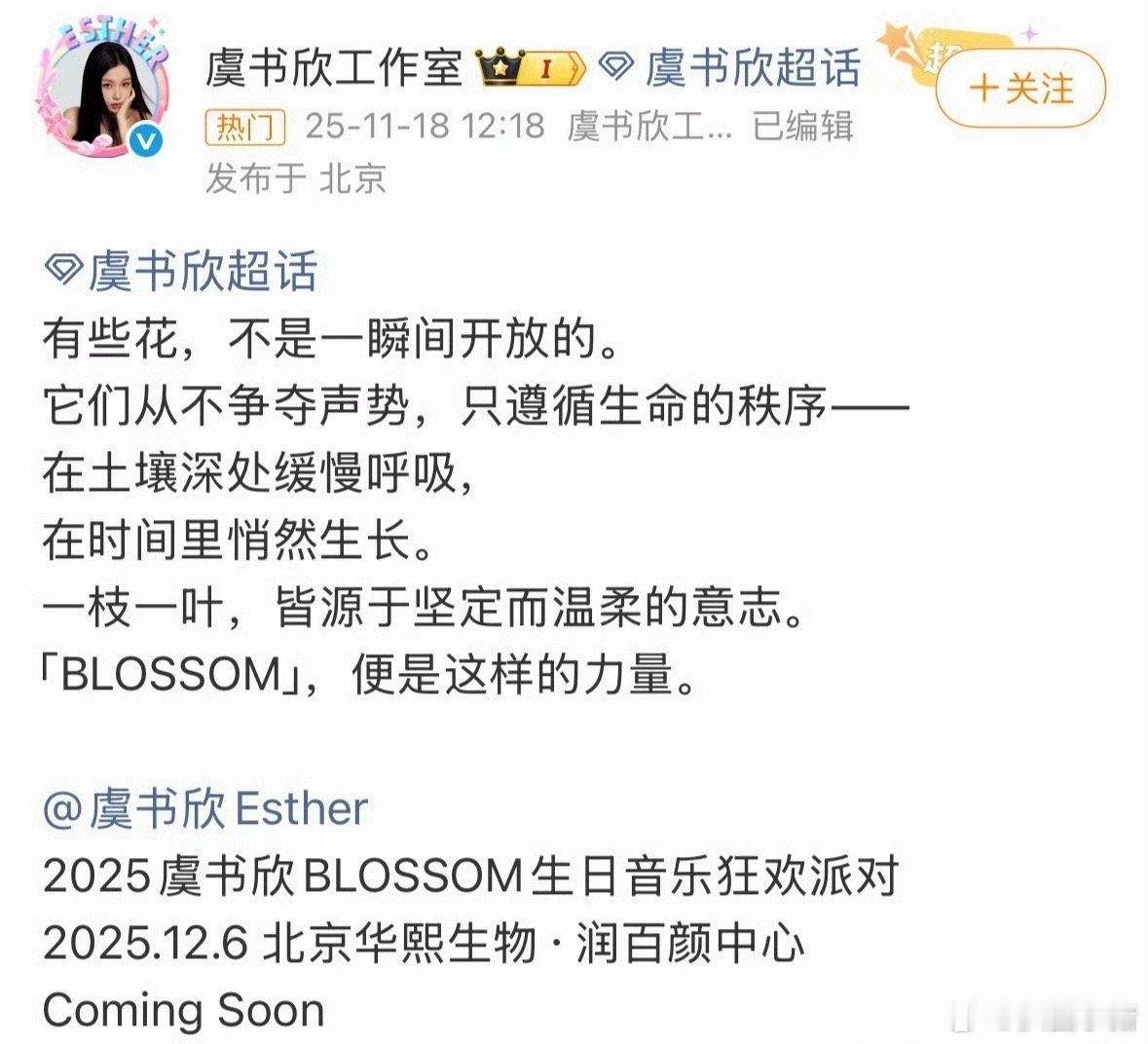 虞书欣BLOSSOM生日音乐狂欢派对官宣!12月6日北京