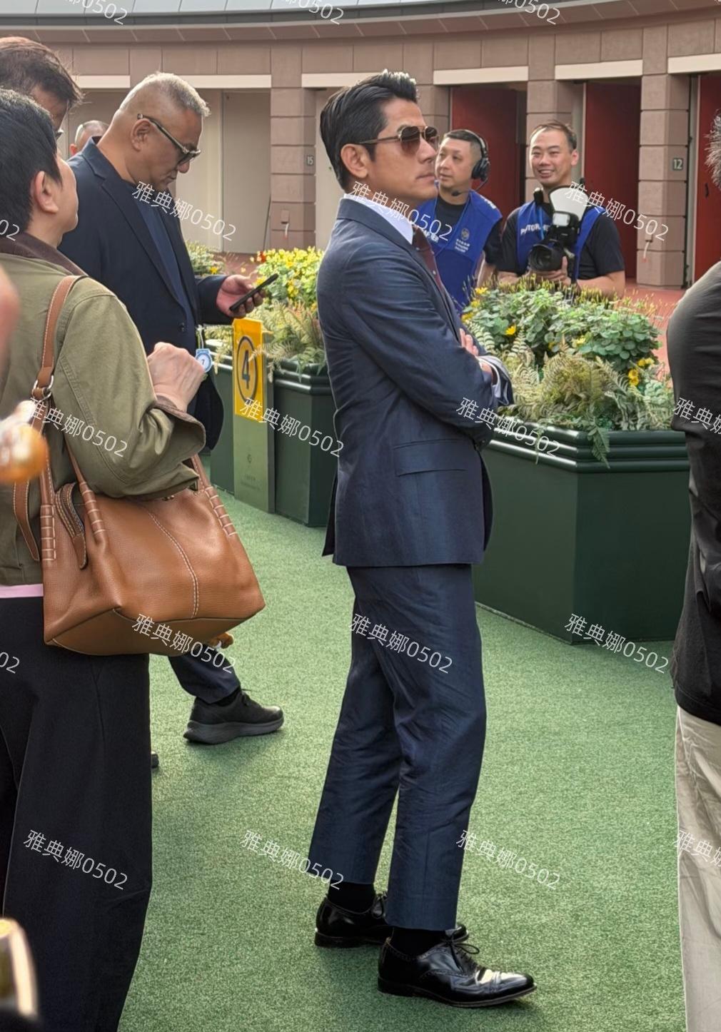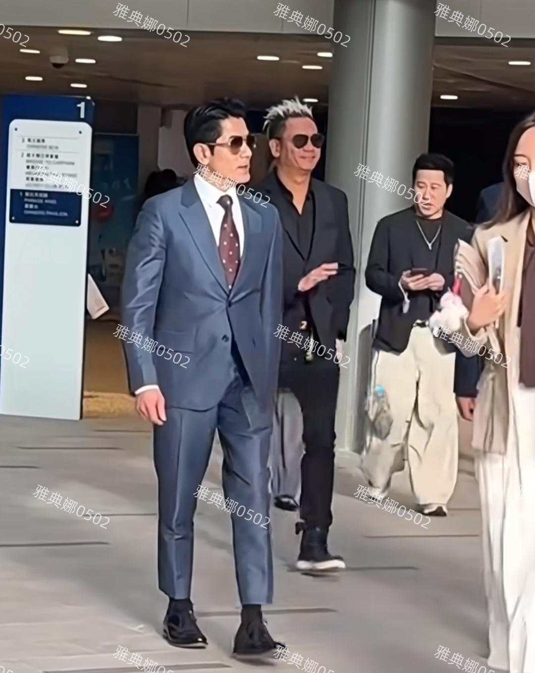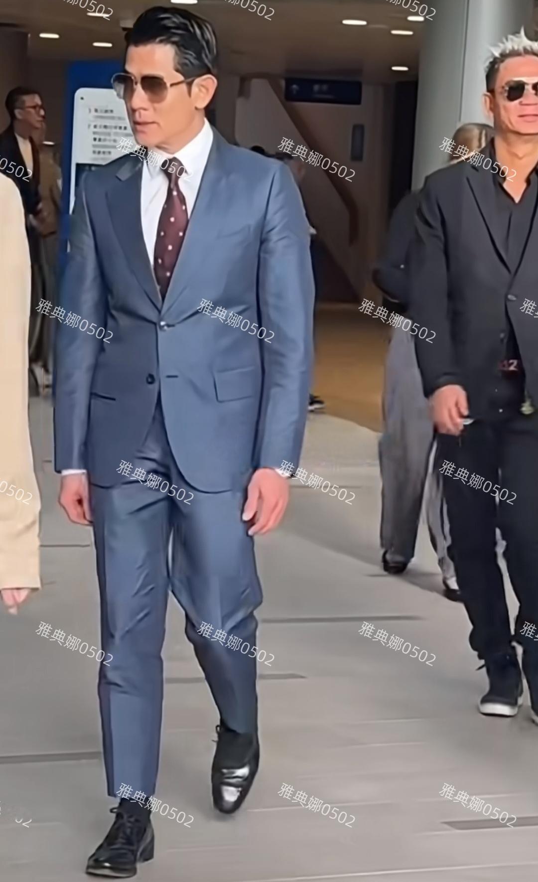 郭富城单看他自己特别年轻特别帅,头发乌黑身材健硕打扮精致,他穿着薄底皮鞋双手抱肩静静站在那里,就像在拍画报一样,身上的每件单品都很时尚又英俊又有风度。 但把他放在人群里就显得小小一只,看着气场瞬间弱了很多,郭富城的西装裤子貌似有点儿短,视觉上比例不太好,尽管这样他也没像某些男明星那样穿着笨重的增高鞋,刻意营造显高的气氛,花甲之年还身材轻盈步伐矫健,气质清爽不油腻,越老越有魅力。