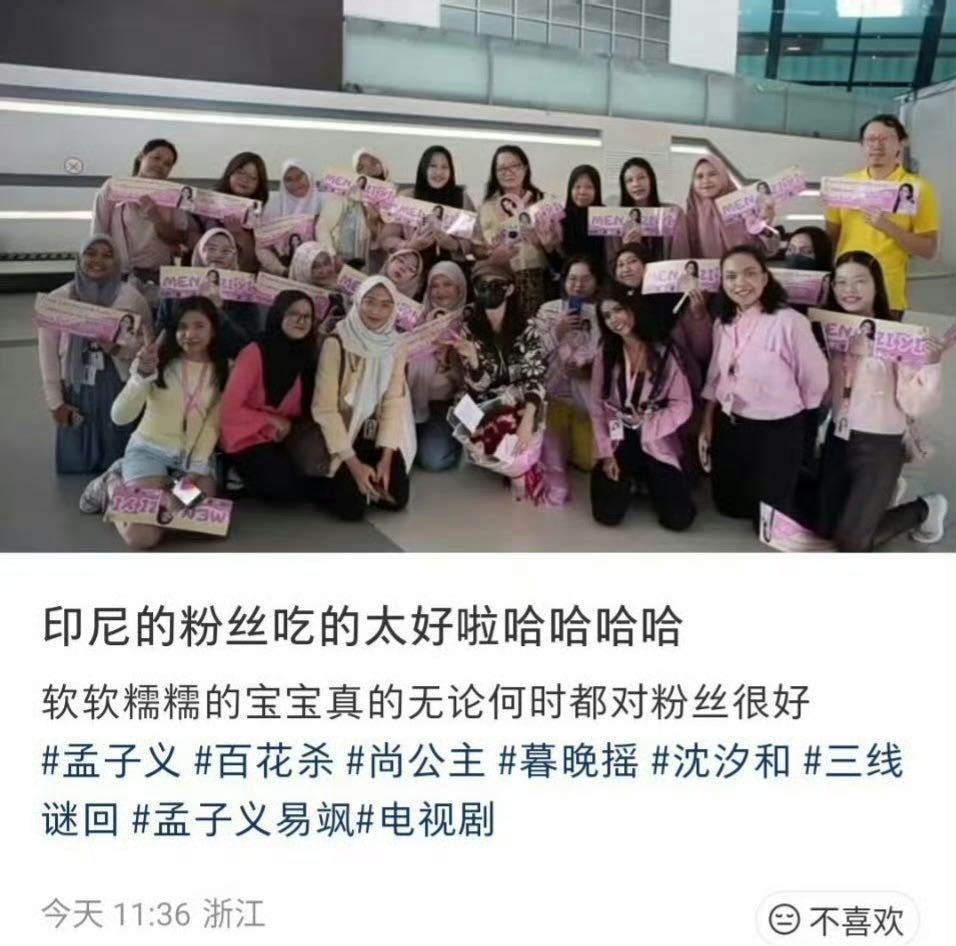 棕白雪花纹针织开衫+复古长筒靴,孟姐路透造型温柔又时髦!英文互动超自信,和粉丝贴脸合影、收花到手软,雅加达的人气直接爆棚