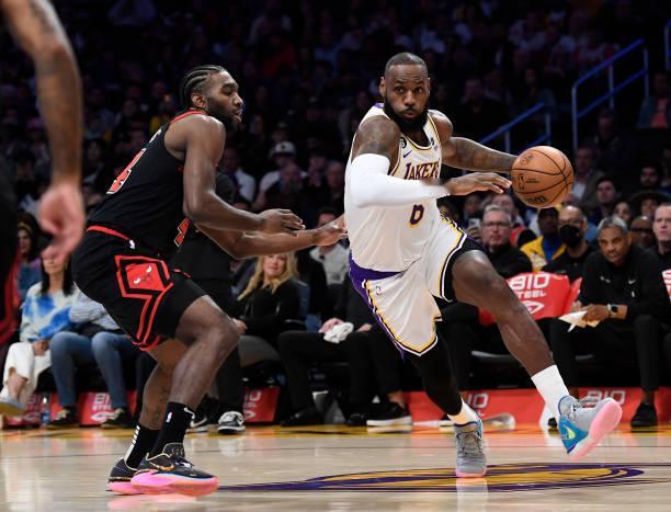 2023年2月底,詹姆斯因为右脚肌腱伤势缺阵了13场比赛。2023年3月26日湖人主场对阵公牛,詹姆斯复出并且以替补身份出战,这是他湖人生涯至今唯一一次打替补。那场球,詹姆斯打了不到30分钟,得到19分8篮板3助攻,湖人108-118输给公牛。三天后,湖人客场再战公牛,詹姆斯回到首发,拿下25分8篮板,帮助湖人121-110复仇公牛。