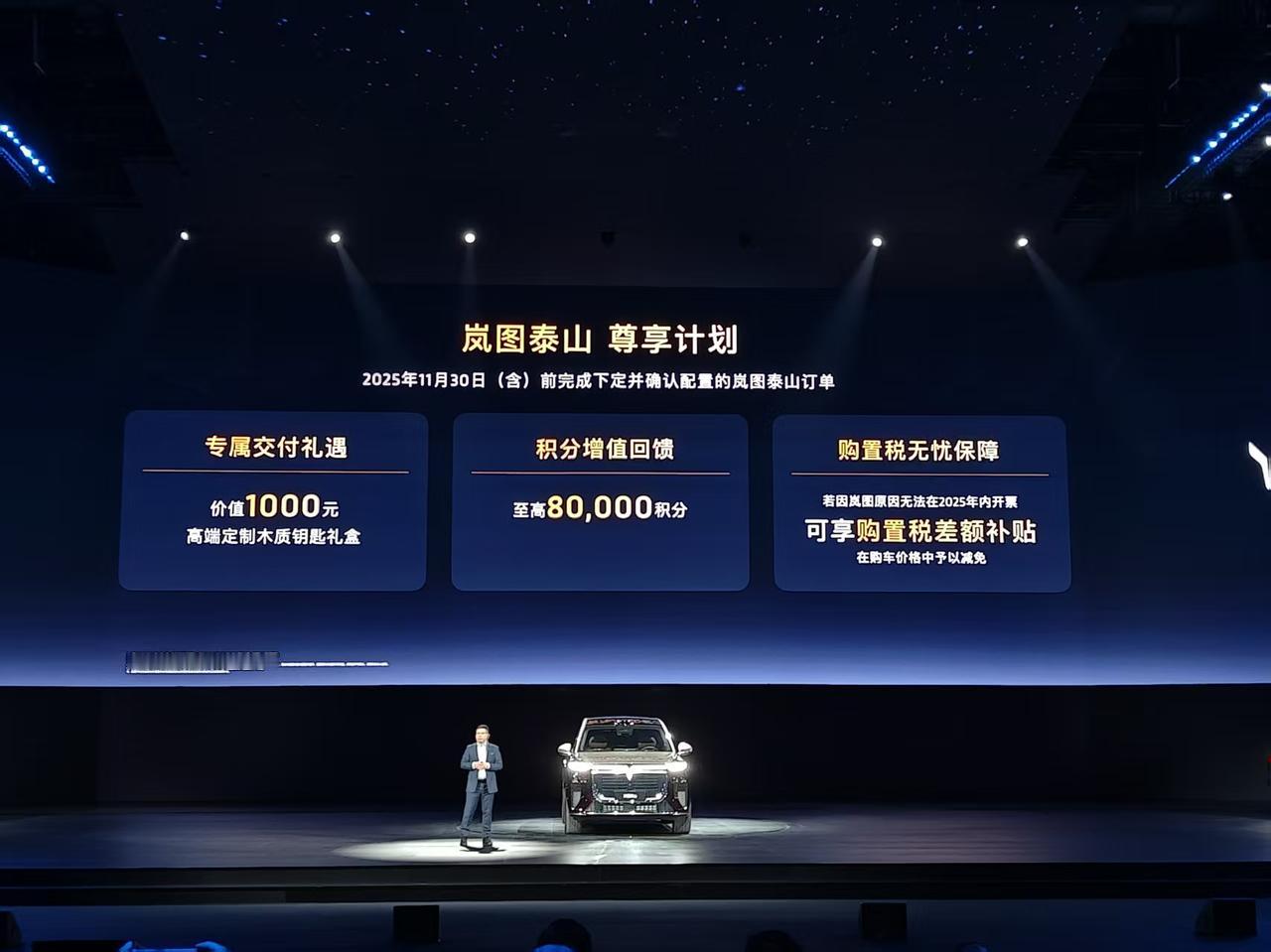 车盟快讯:11月18日,岚图泰山正式上市!新车共推出4款车型,售价区间37.99-50.99万元,其中Max版37.99万元、Max+版40.99万元、Ultra版45.99万元、黑武士版50.99万元。作为大六座旗舰SUV,尺寸达到5230x2025x1817mm,轴距3120mm,首发三腔空悬+EDC魔毯功能,标配华为乾崑智驾ADS4与鸿蒙座舱5.0,AI云感座椅+32扬声器音响拉满豪华感。搭载65度三元锂电池,800V平台+5C超充加持下12分钟充电量20-80%,纯电续航高达350km,综合续航超1400km。37.99万起的定价搭配百万级配置,大家觉得岚图泰山能否颠覆旗舰suv市场的格局?