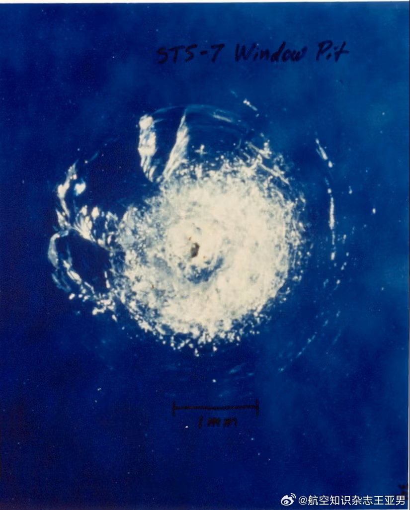 神舟20号乘组这次回家之路的波折再次让人们开始关注太空碎片。过去我们可能觉得那些遗留在轨道空间的太空垃圾距离我们很远,似乎不大可能造成大麻烦,这次我们真的遇上它们了——这里要特别强调,我们可能以为那些碎片都是懒洋洋悬浮在太空中,实际上可不是,它们是以每小时二三万公里的速度在疾驰。这样的速度正面撞上或是侧面剐蹭上飞船或者空间站,那能量绝对是武器级的。看看这张照片可能就会更好地理解太空碎片的威力:这是当年美国“挑战者”号航天飞机在轨道作业时风挡玻璃被一块3毫米直径的油漆碎片撞击后的结果,碎片犹如子弹般在风挡上留下深深的空洞,深度大约为3厘米,还好风挡玻璃厚度足足有5厘米,碎片没有穿透,但这样的损伤对航天飞机的安全会构成严重威胁。咱们的神舟20号这次也是被碎片打中了返回舱的舷窗,出现的微小裂纹与这种痕迹类似,裂纹意味着舷窗抵抗压力载荷和热载荷的能力都会受损,为了保证航天员的安全,神舟20号只能弃用,临时改换神舟21号飞船先行回家。这种预案,早在发射前就准备好的,后续一系列工作都在紧锣密鼓,希望一切顺利。