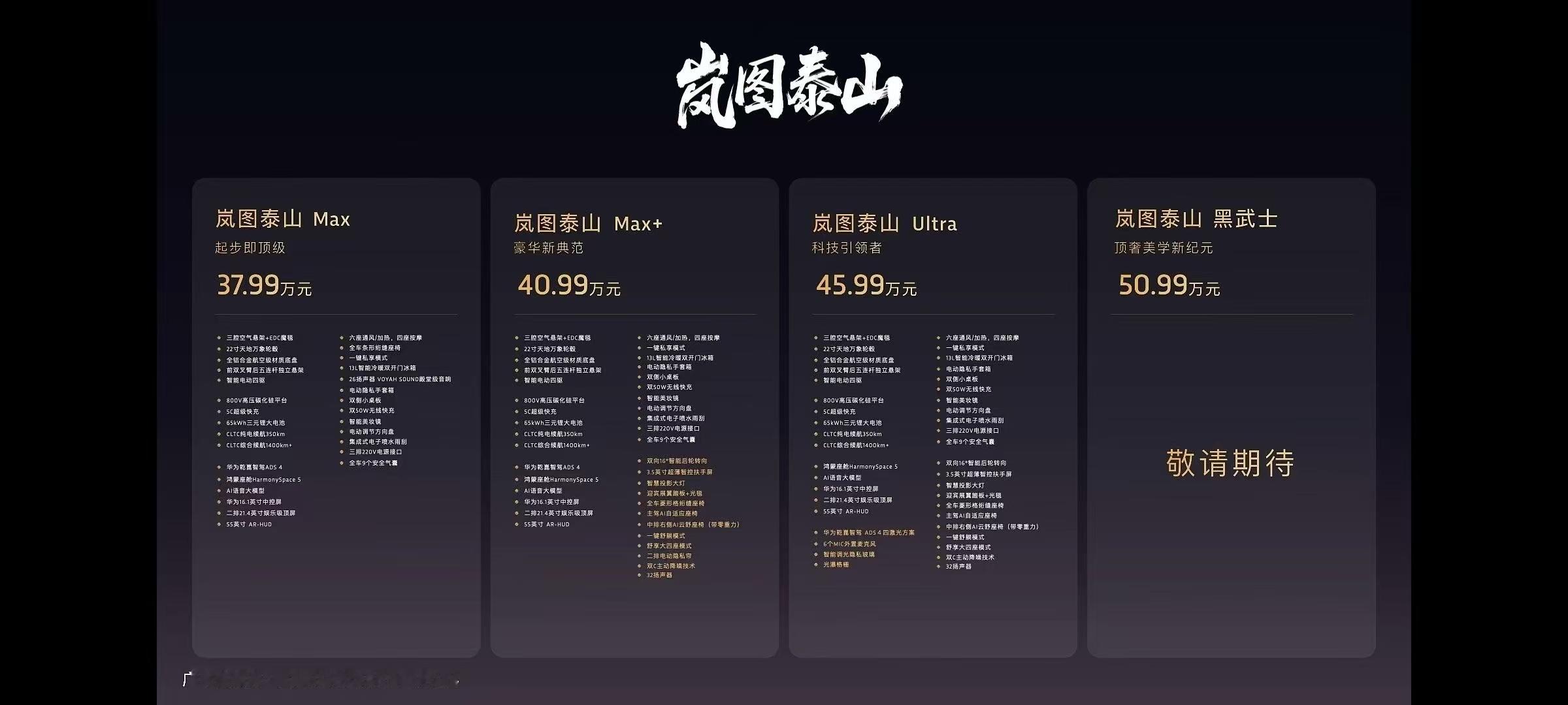 有的朋友在说,泰山这个定价感觉不是上不上下不下。要做高端就是这个价40-50w就是国产天花板,再贵人家买尊界了再便宜就和智己领克一桌了,显然要比他俩贵的至于能不能卖好,看品牌接受度了,至少我觉得上海这里不是很认可
