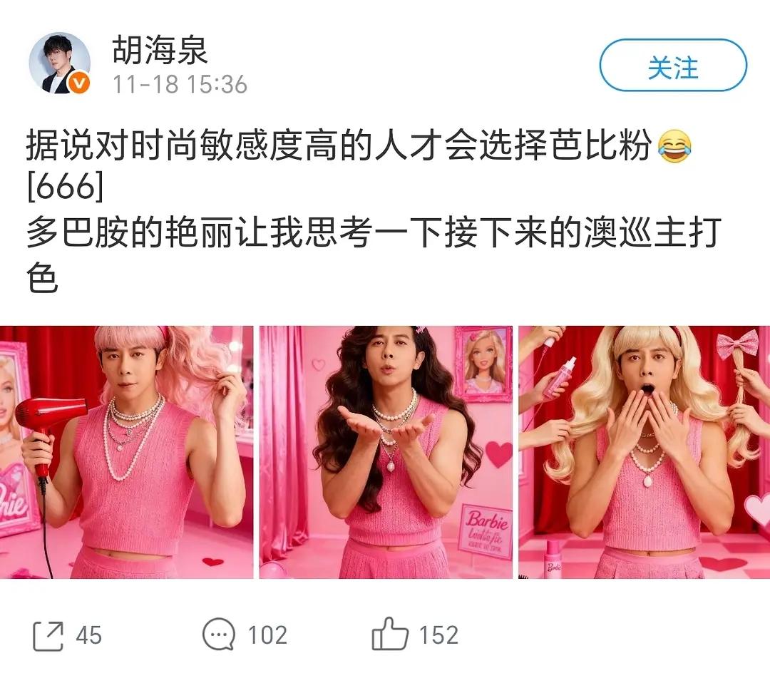 胡海泉这是要干嘛?好辣眼! 还以为是被人恶搞了,结果是他自己发的,但是也太辣眼了吧!曾经唱着《最美》的他,怎么变成这样?! 胡海泉 羽泉 胡海泉cos芭比
