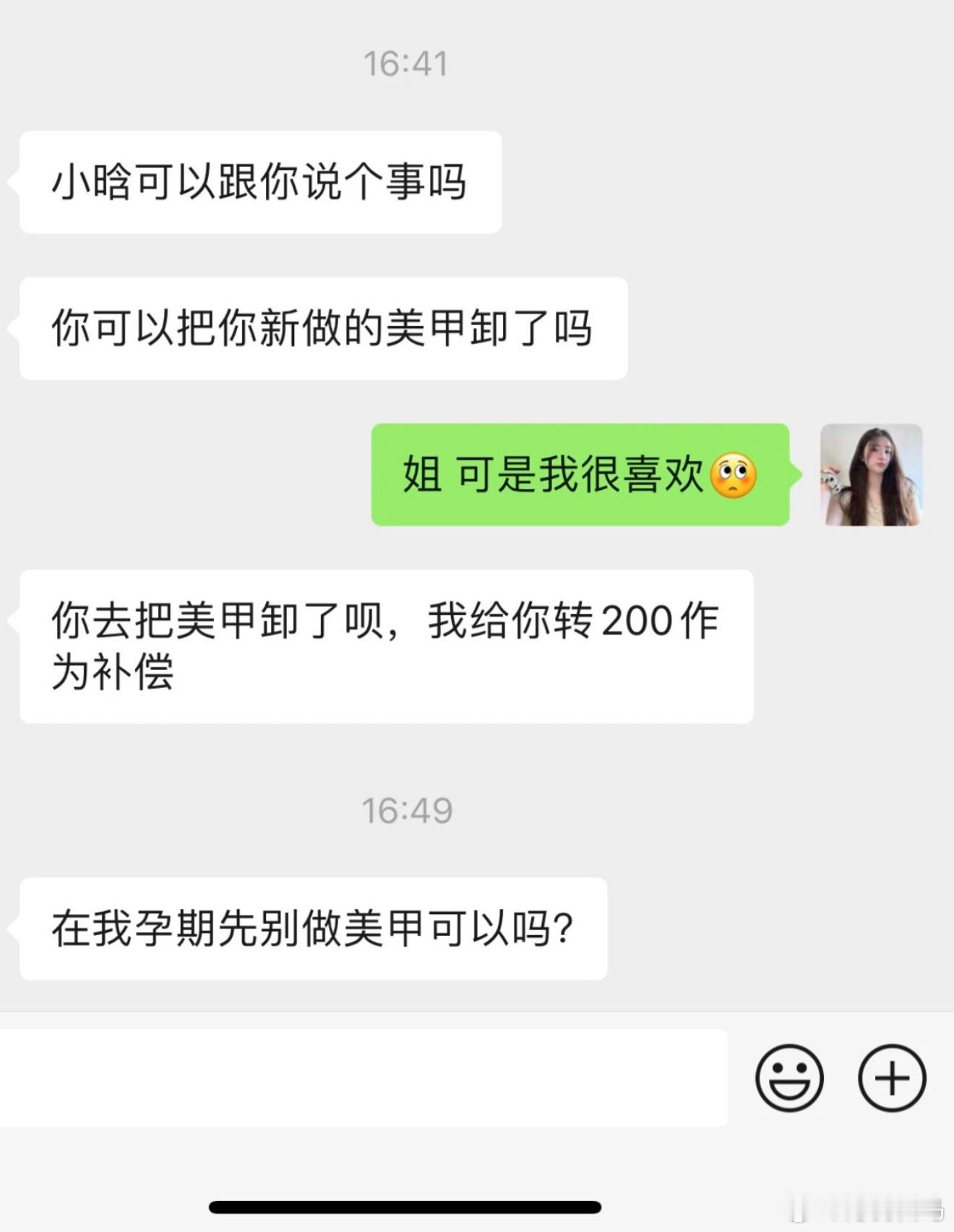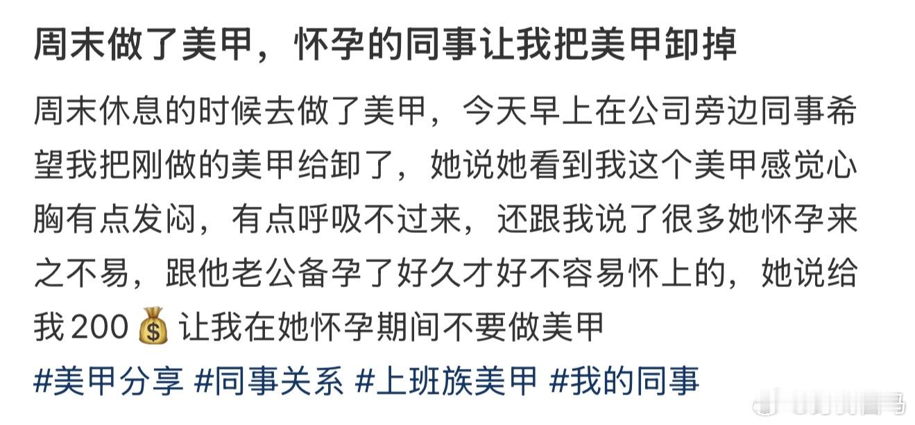 周末做了美甲,怀孕的同事让我把美甲卸掉