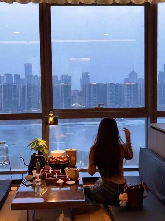 沈阳的蓝调时刻已经nextlevel了。。。🌃 快去!!!太有感觉了……😭😭😭 真不是上海!! 是在沈阳!!居然拍到了爱乐之城同款蓝调时刻的天空🦋美到失语…… 就藏在长白岛浑河旁边的写字楼里 新开的!!!超绝的高空茶室!!! 日落后的二十分钟 就会出现蓝调天空 店里也会随之熄灯 好像告诉所有人浪漫神秘的夜晚即将到来 内心好像都平静了下来 此时浪漫的沈阳好像具象化了~ 随手一拍都是加了滤镜的美 点了一份香浓的烤奶 还有围炉煮茶的热气随着灯光跃动 是一个来了根本不想走的地方……