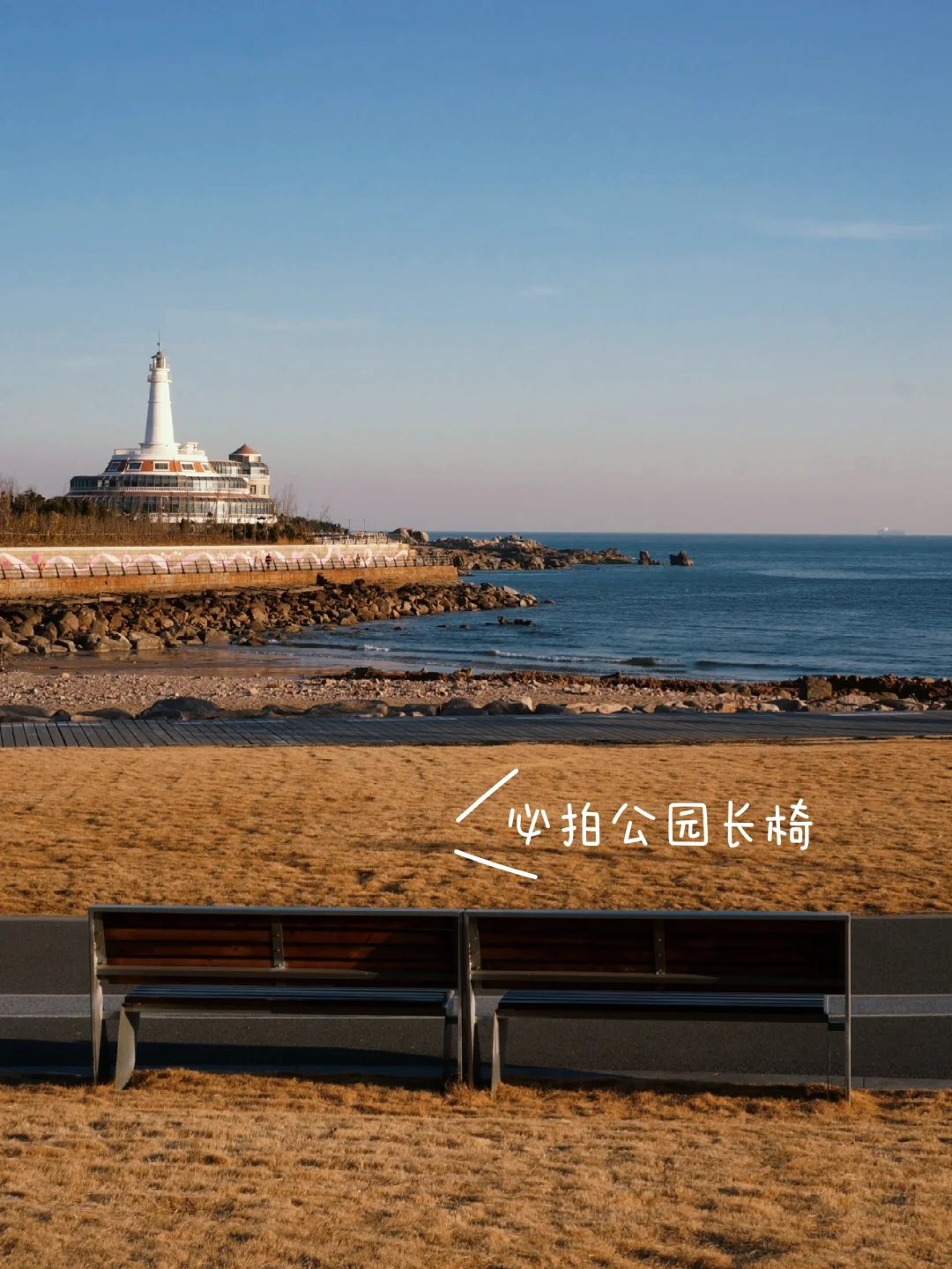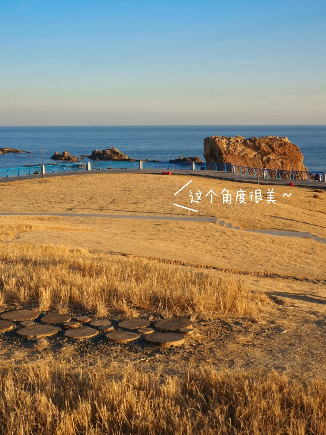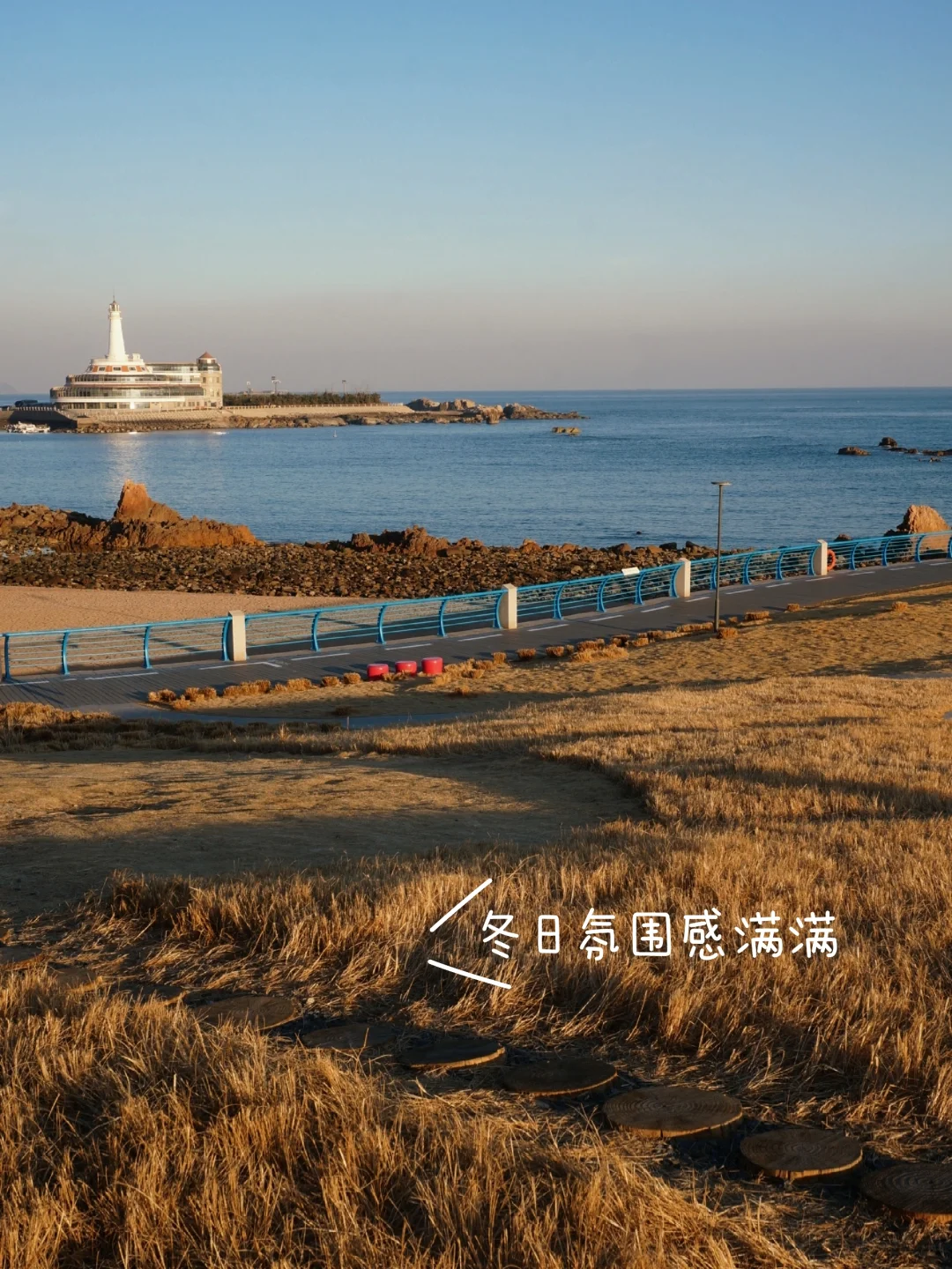 15点半抵达海之恋,边走边拍照,16点半走到小麦岛,一直到17点半这个时间段最美,和喜欢的人坐在草坪上等一场完美的日落🌅,日落之后是冬日蓝调时刻,尊嘟太浪漫了~