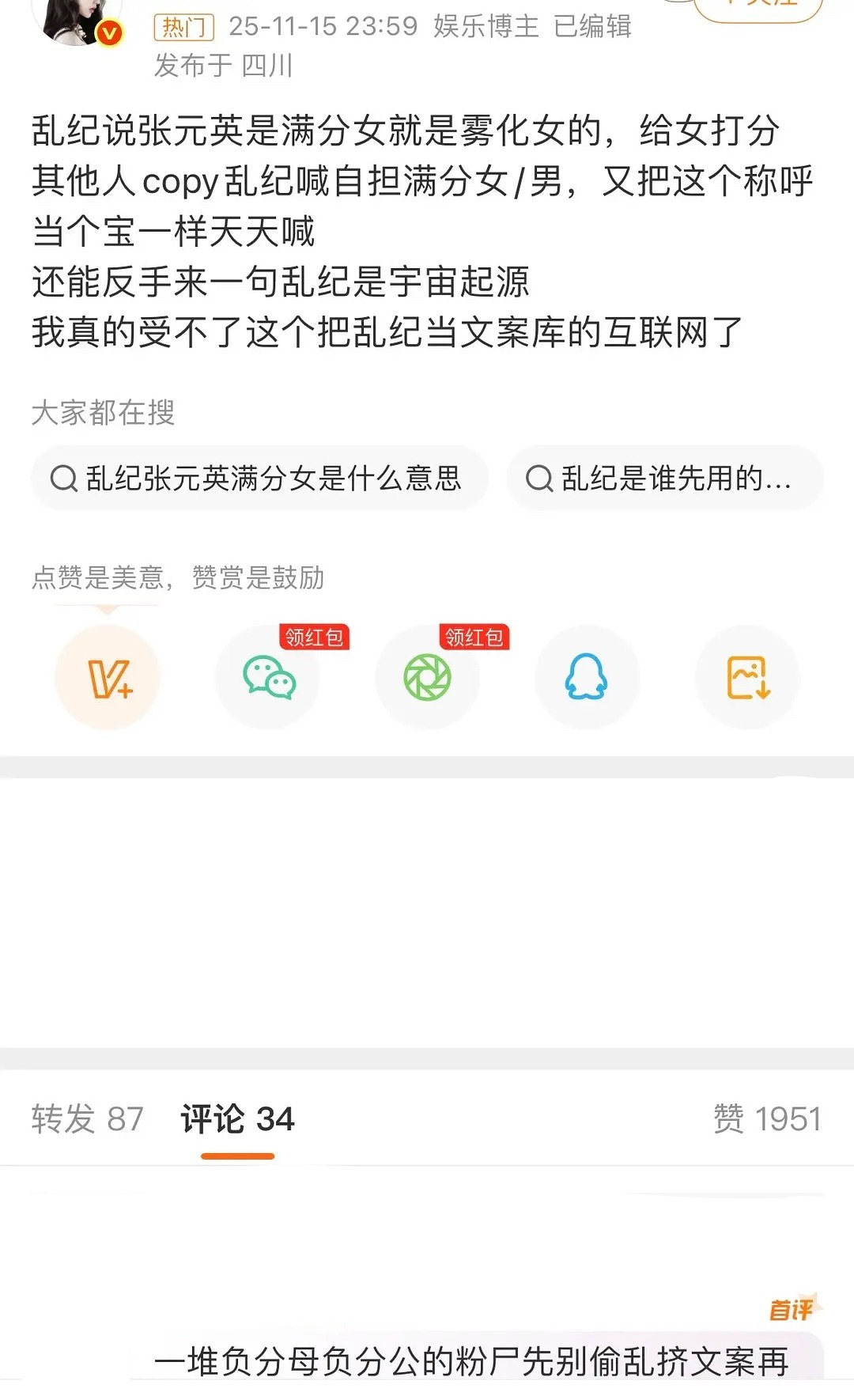 刷到张靓颖那身新演出服,底下评论给我看乐了。说这是给“男光棍”饱眼福的,还有人