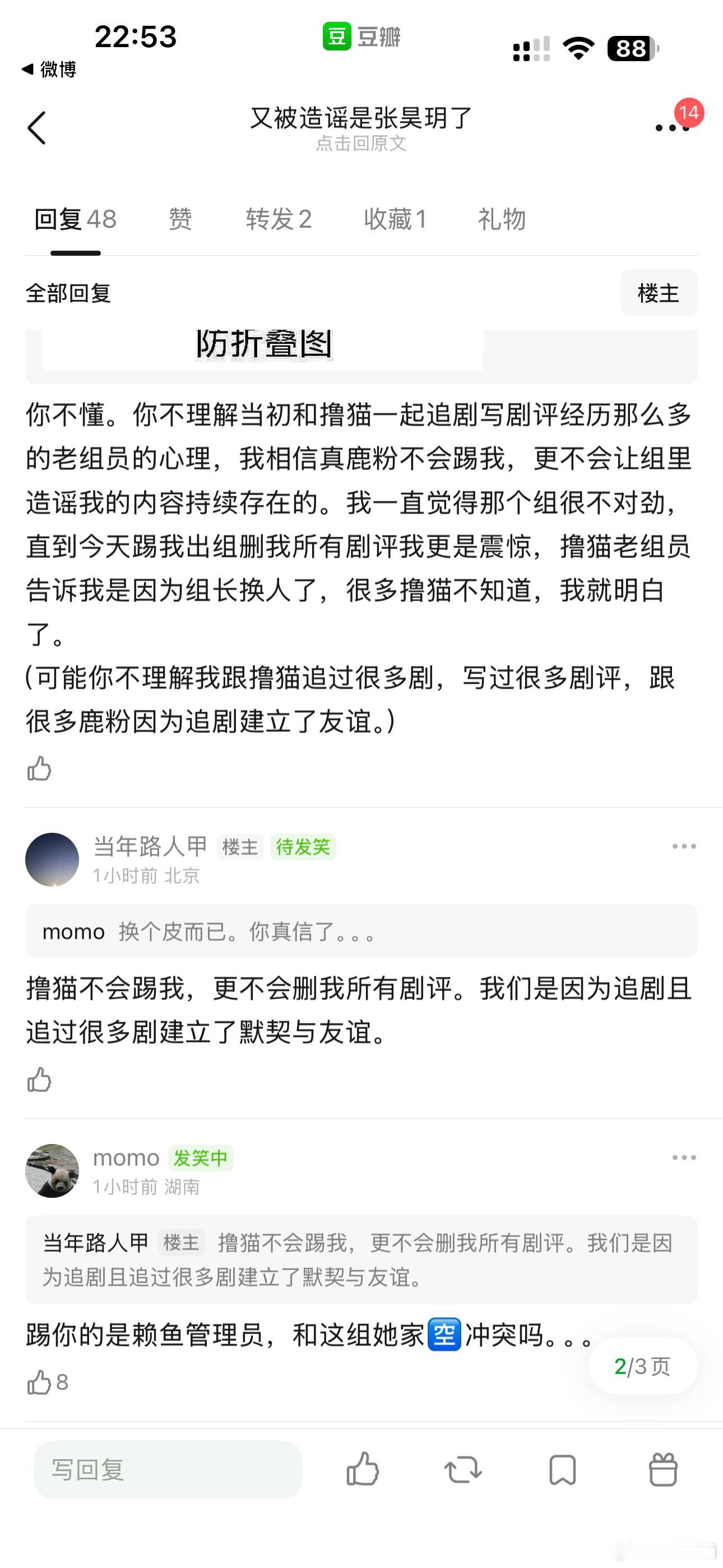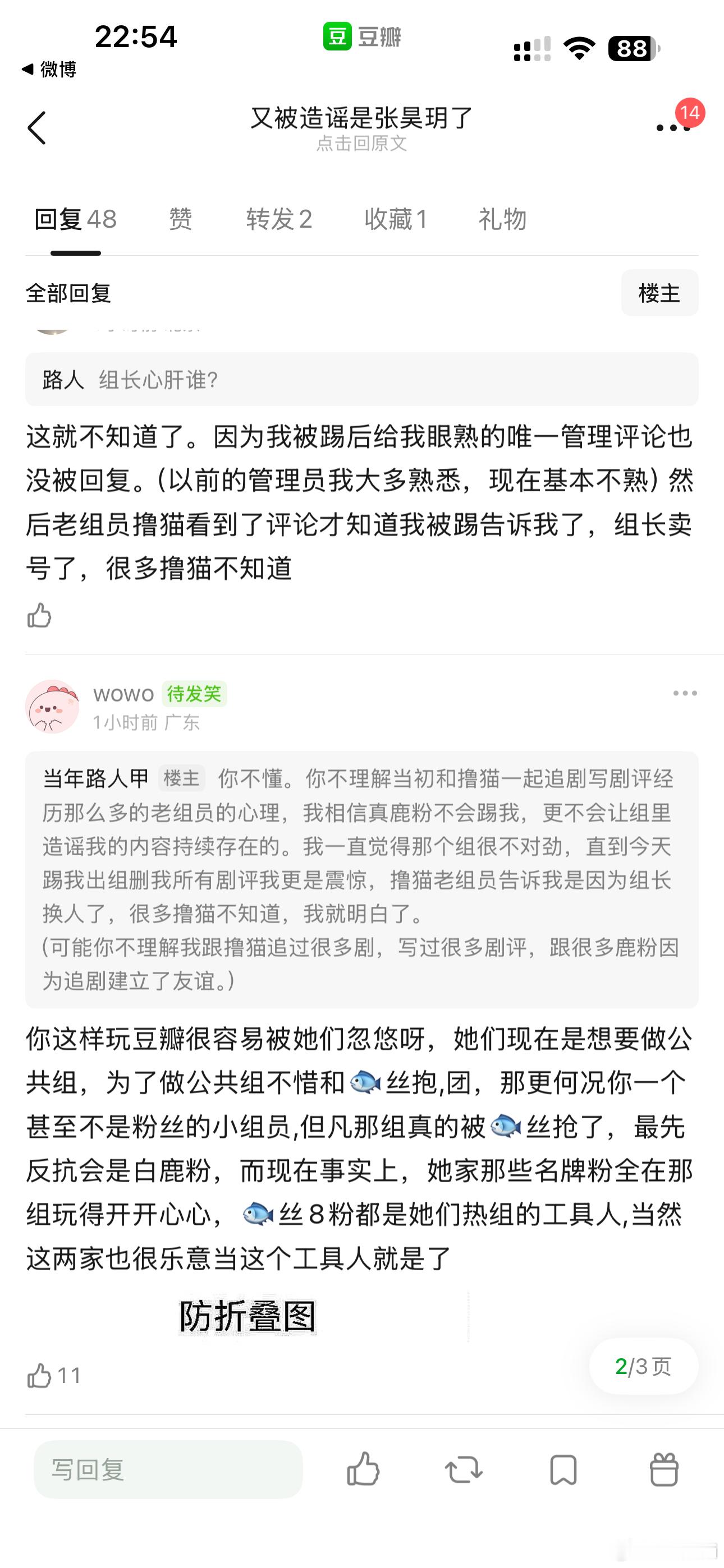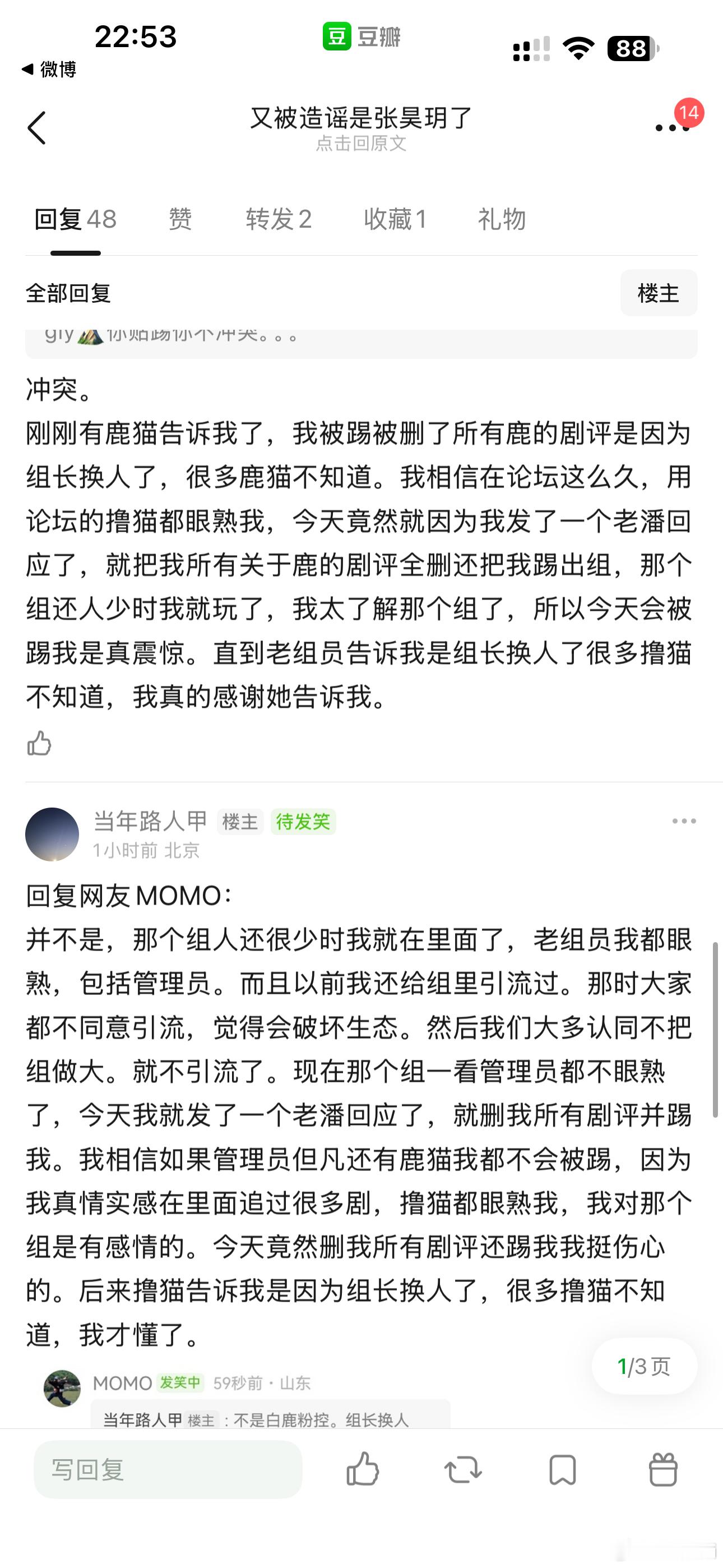 乐子组有一个路好白鹿的人说自己在捡组发了个老潘就被t出组了,之前发白鹿的剧贴也被删了,说很多鹿毛都眼熟他就算被踢也会拉回去,现在看管理员和组长都不认识了。之前都有白鹿粉在控现在不是了,鱼丝疑似侵入各处,买大粉号或者把管理员换成自己人,应该是预备搞舆论战。