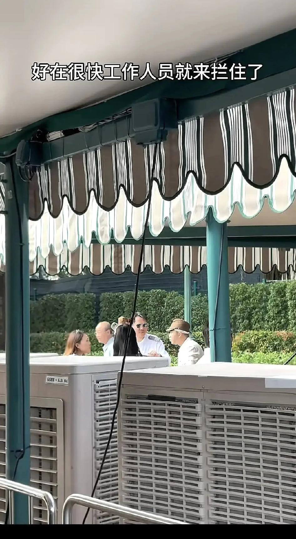 香港迪士尼乐园内,一名穿着鬼子衣服,且腰间束有佩刀的男子带着孩子跟妻子进入乐园。 这一幕被到乐园游玩的中俄情侣抖音网红“Helin和Eva”看到,他们当即向园方反应这个情况。 迪士尼收到这对情侣的投诉之后行动也非常迅速,我们可以看到不多时他们就已经组织了工作人员赶到那名男子周围。 现场大概有十几名迪士尼的保安在跟男子沟通,看照片这个位置是入园口的广场,还没有检票入场的人都从这里经过,一般都有服务人员巡场,这也是此次收到投诉之后这么及时来处置。 由于历史原因,大家都知道也不允许有人穿着这样的衣服招摇过市。 好在迪士尼处理及时也非常正确,将男子拦在门外。 大家怎么看?