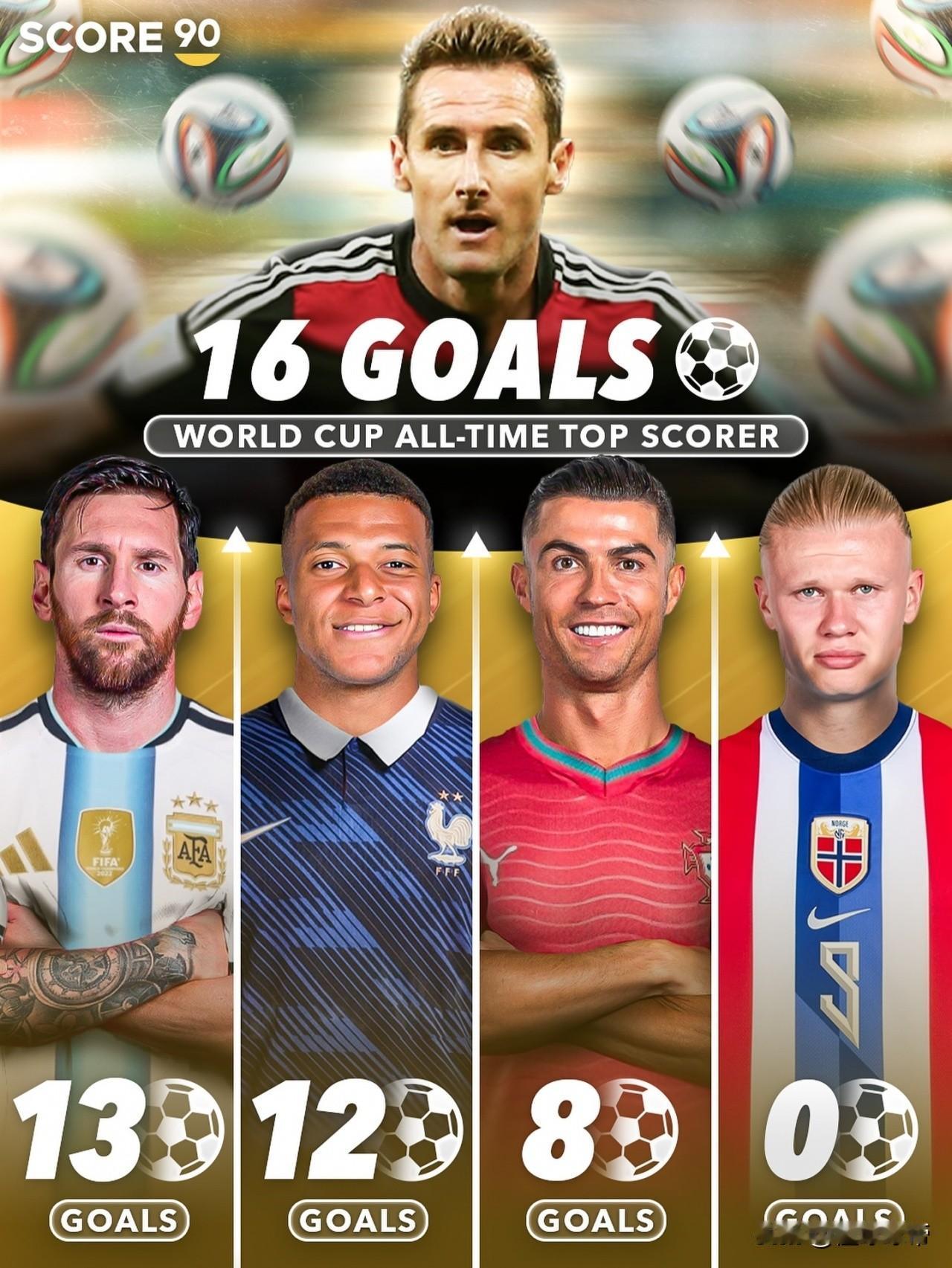 最后一届世界杯了,梅西和C罗谁能打破克洛泽的世界杯进球纪录? 葡萄牙和阿根廷都顺利晋级世界杯决赛圈了,梅西和C罗也迎来了个人最后一届世界杯了,目前梅西在世界杯上打进了13球,而C罗则打进了8球,距离世界杯射手王克洛泽的进球记录16球都有不小的差距。 梅西的差距能小点,只有3球,如果能在世界杯小组赛遇到实力不强的球队,梅西一个帽子戏法就能追平克洛泽了。 C罗则还差8球,想要追上至少要在小组赛进5球,然后在淘汰赛进3球以上了,而C罗如果小组赛被禁赛2场的话,那么只能靠在淘汰赛场场天神下凡连续进球了,那绝对要封神了。 不过这一切对于姆巴佩来说一点挑战都没有,姆巴佩目前已经打进了12球,以法国队的实力至少可以进4强了,众所周知世界杯赛场上的姆巴佩惹不起,在决赛都能上演帽子戏法,因此明年世界杯超越克洛泽轻轻松松不费劲。 更何况现在姆巴佩才26岁,至少还能参加三届世界杯了,以后世界杯的进球记录至少要被姆巴佩拉到25球以上了。